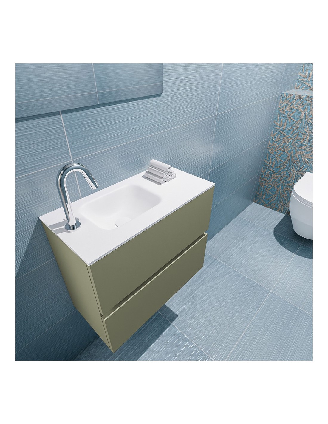 ADA Komplet badmiljø venstrevendt håndvask B60 x H50 cm MDF - Armygrøn/Talkum