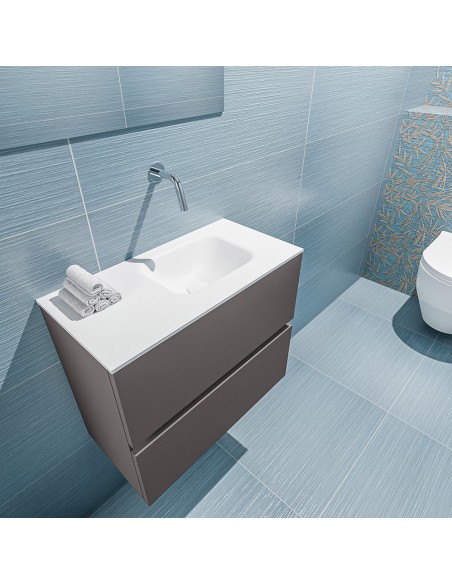 ADA Komplet badmiljø højrevendt håndvask B60 x H50 cm MDF - Mørkegrå/Talkum