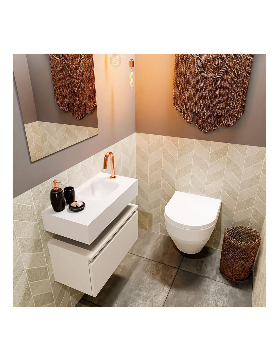 ANDOR Komplet badmiljø højrevendt håndvask B60 cm MDF - Linned/Talkum