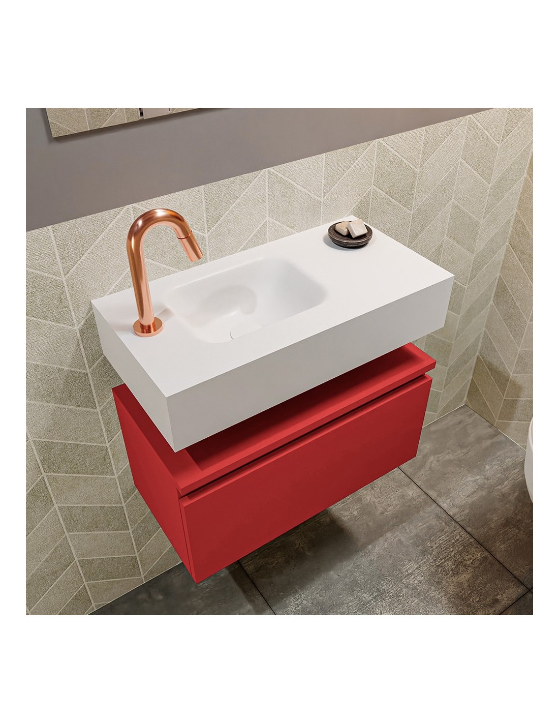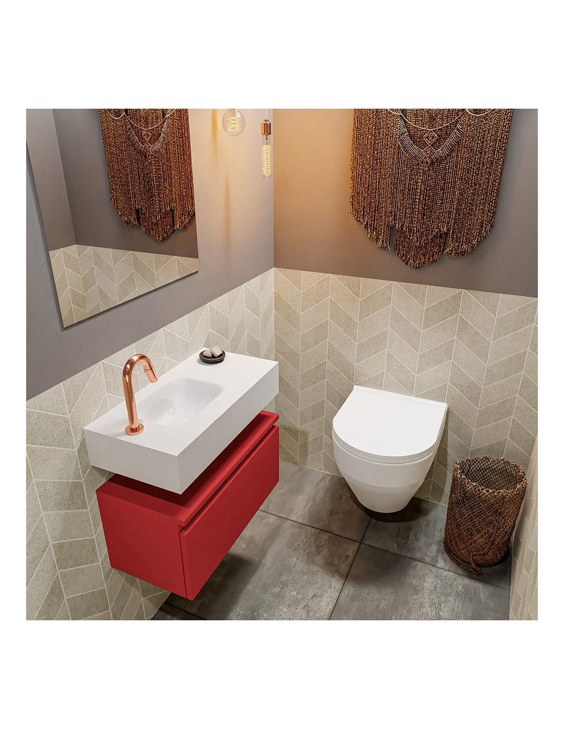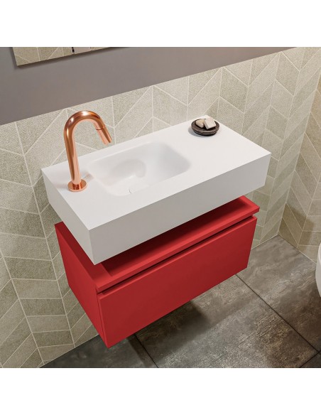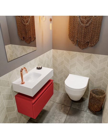 ANDOR Komplet badmiljø venstrevendt håndvask B60 cm MDF - Rød/Talkum
