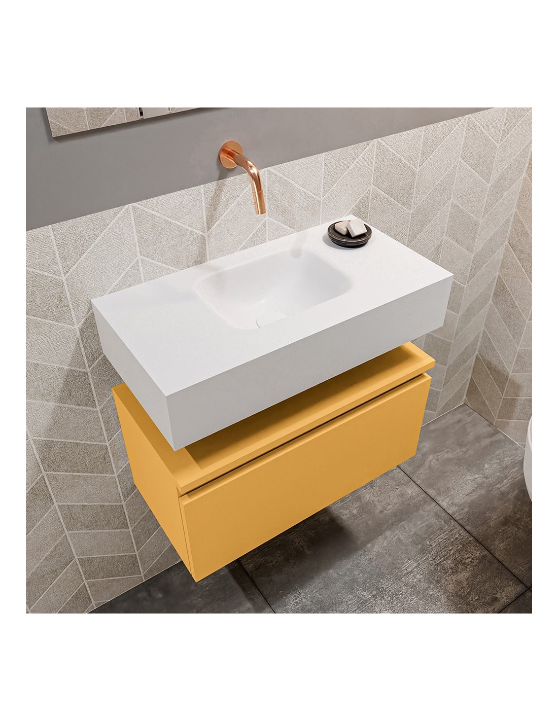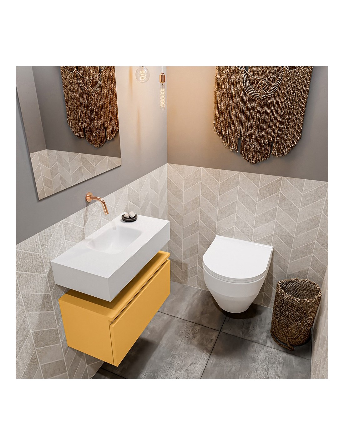 ANDOR Komplet badmiljø centreret håndvask B60 cm MDF - Okker/Talkum