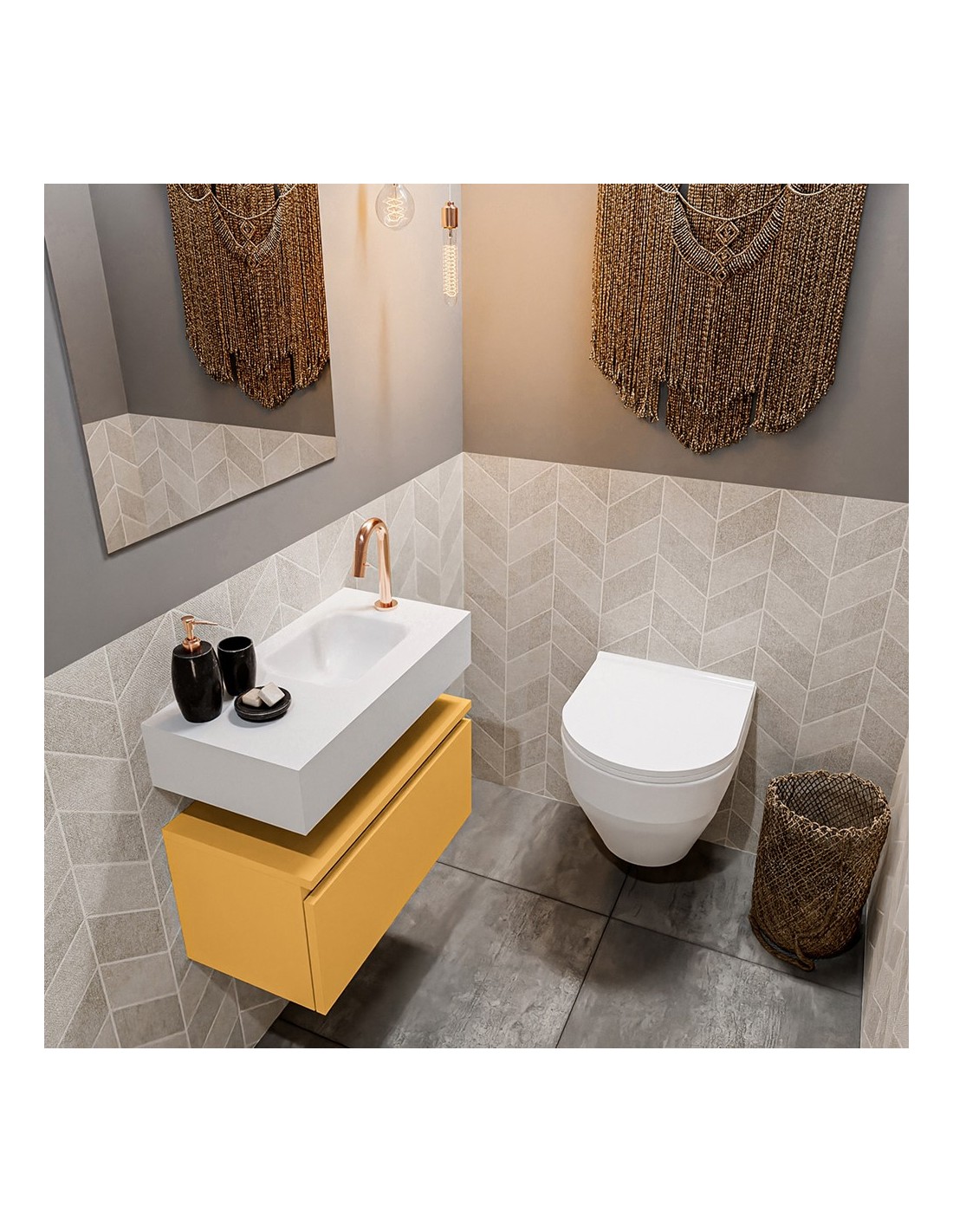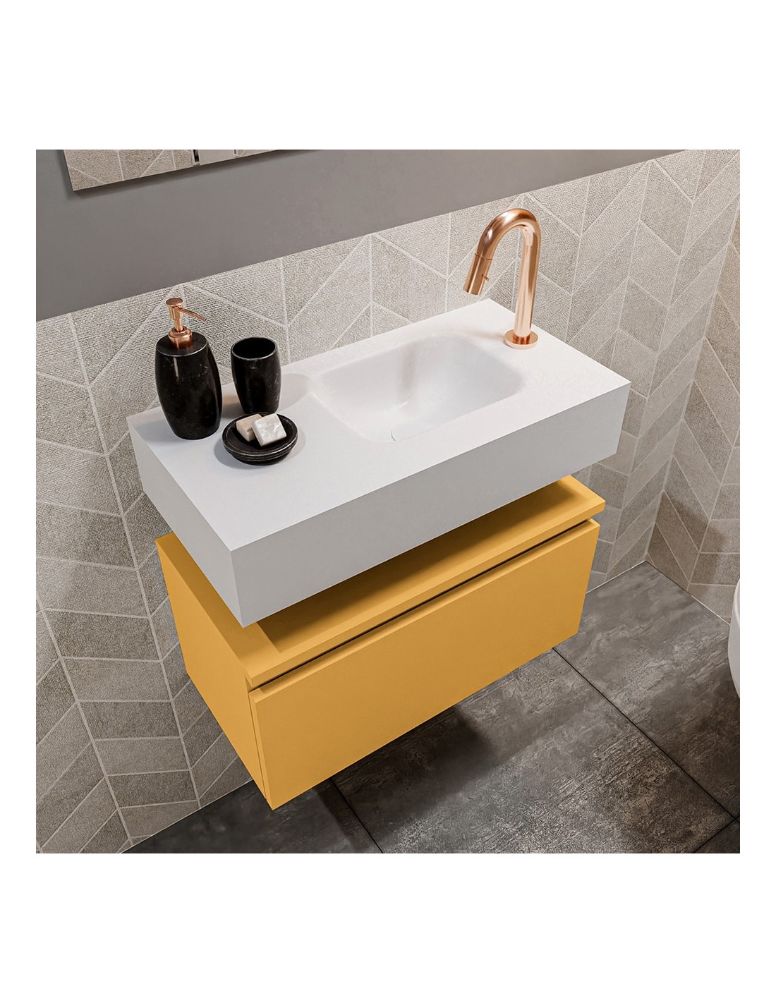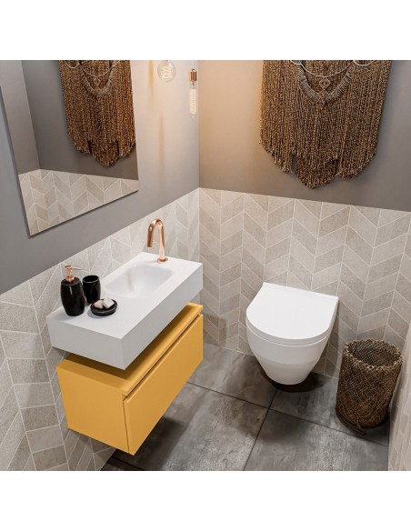 ANDOR Komplet badmiljø højrevendt håndvask B60 cm MDF - Okker/Talkum
