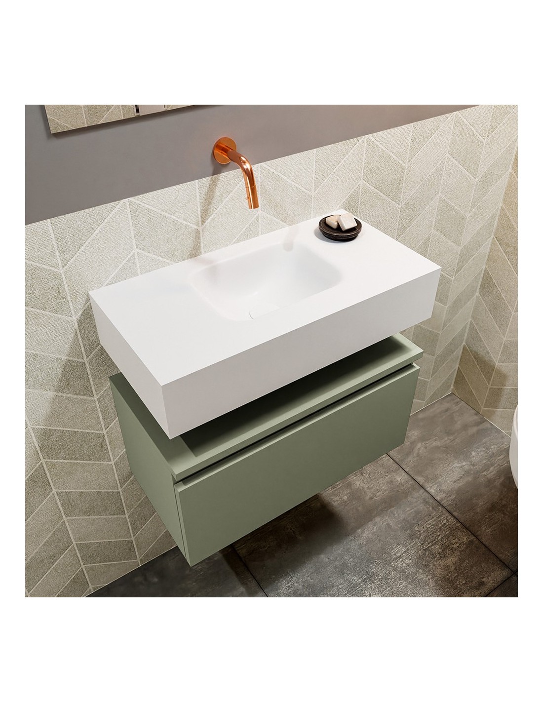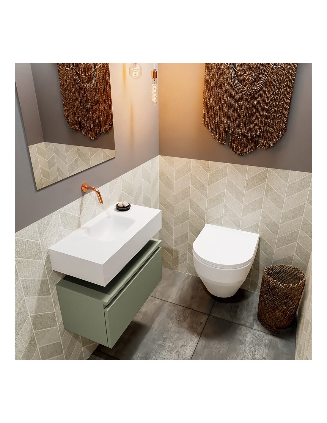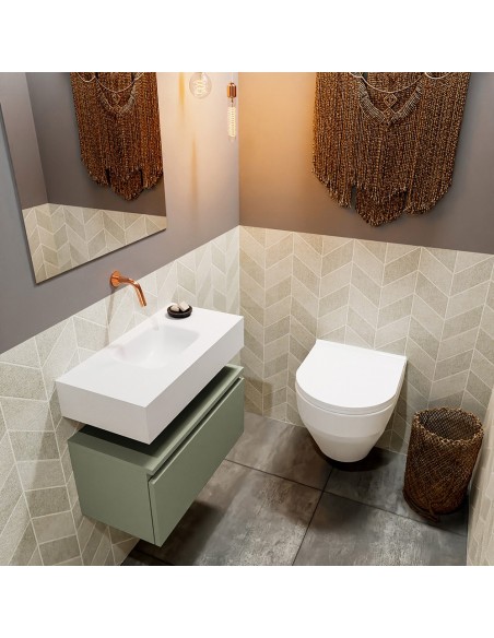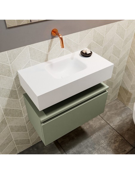 ANDOR Komplet badmiljø centreret håndvask B60 cm MDF - Armygrøn/Talkum