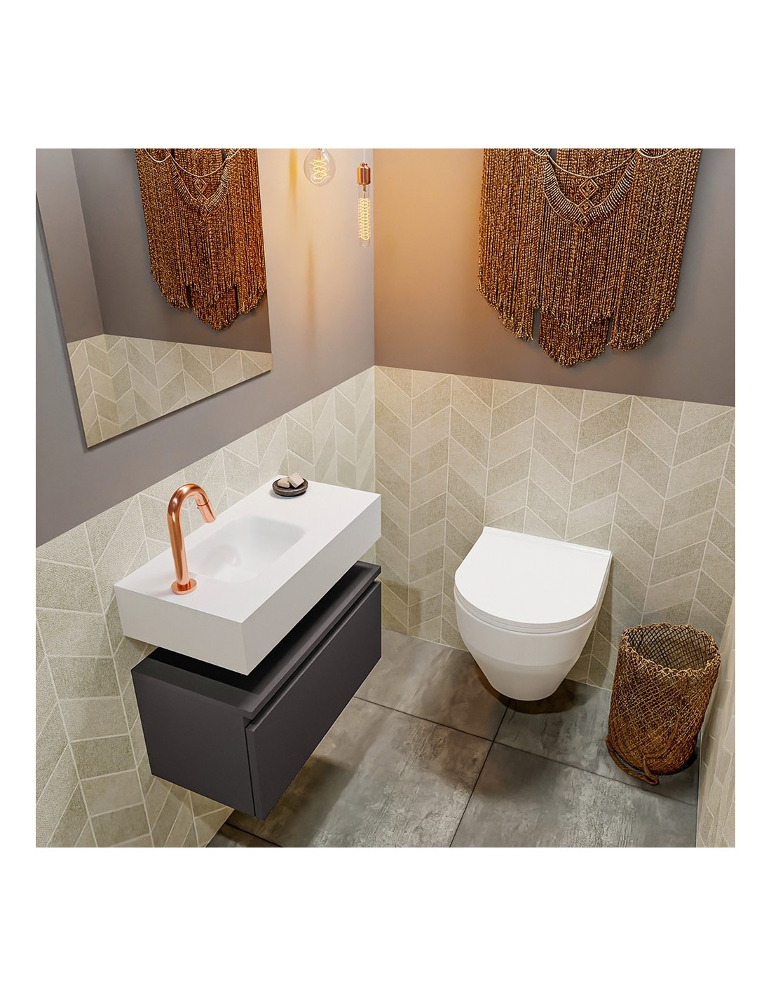 ANDOR Komplet badmiljø højrevendt håndvask B60 cm MDF - Mørkegrå/Talkum