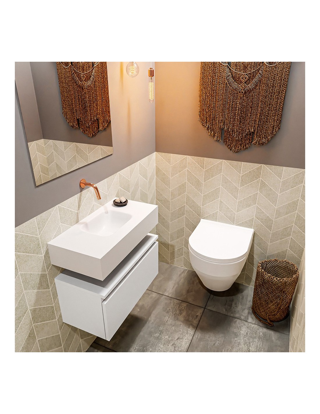 ANDOR Komplet badmiljø centreret håndvask B60 cm MDF - Talkum/Talkum