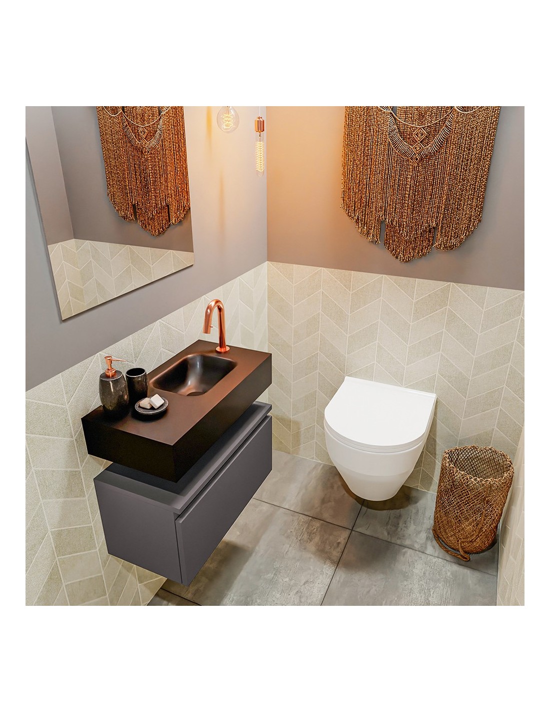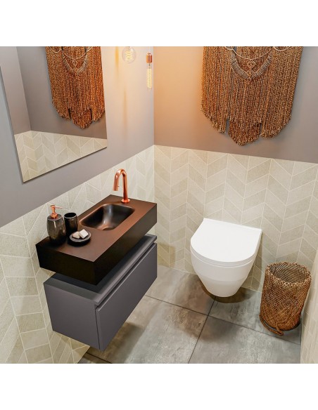 ANDOR Komplet badmiljø højrevendt håndvask B60 cm MDF - Mørkegrå/Sort