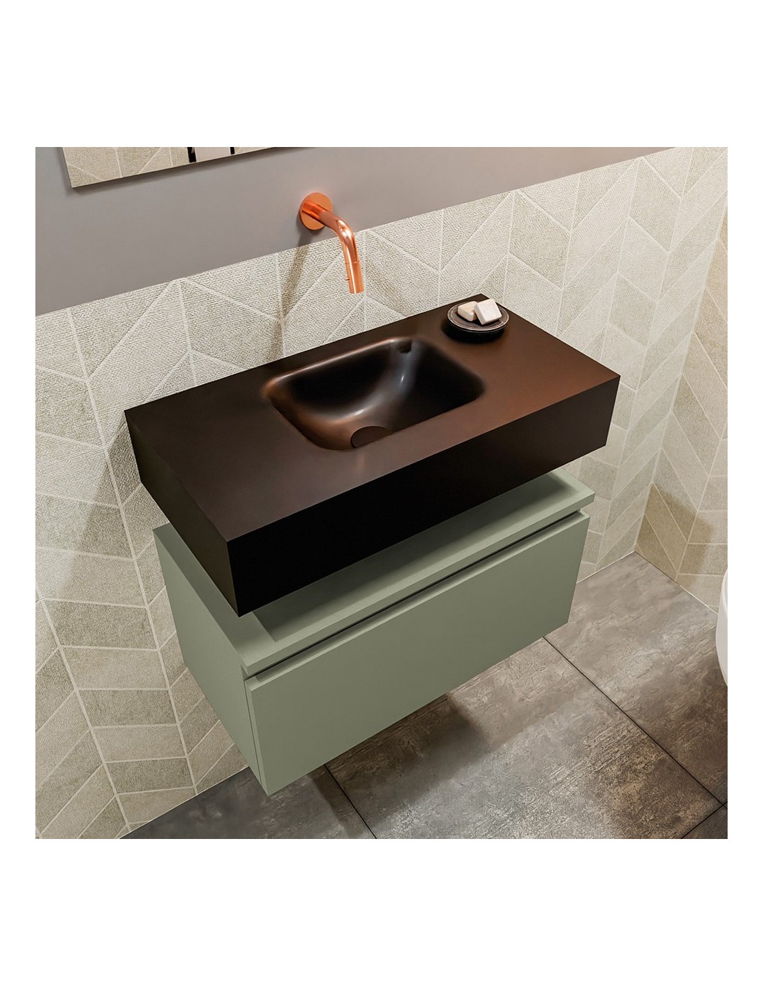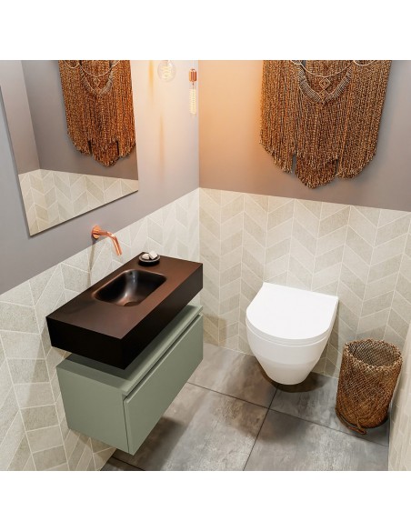 ANDOR Komplet badmiljø centreret håndvask B60 cm MDF - Armygrøn/Sort
