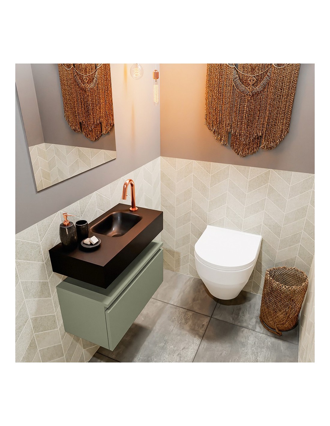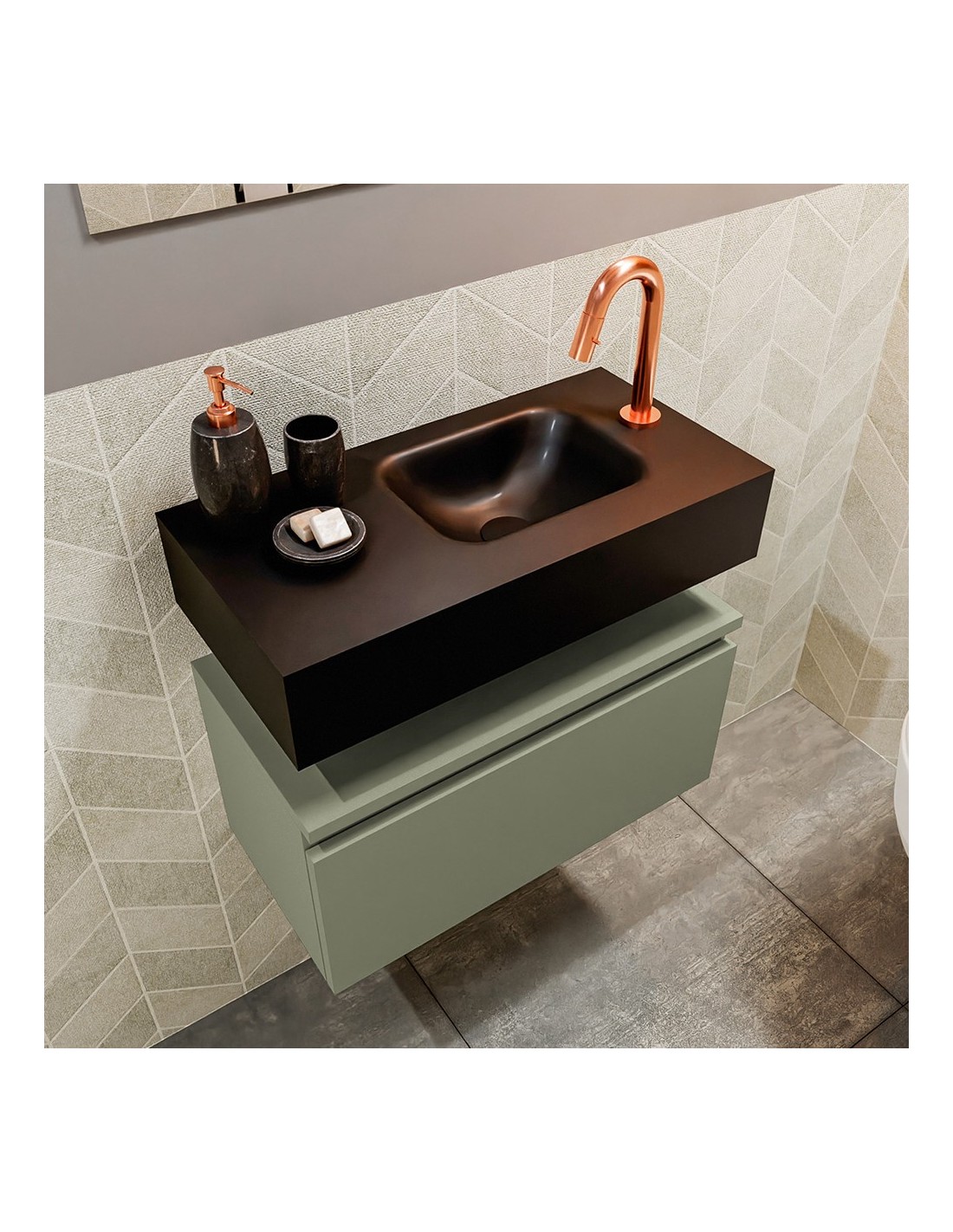 ANDOR Komplet badmiljø højrevendt håndvask B60 cm MDF - Armygrøn/Sort