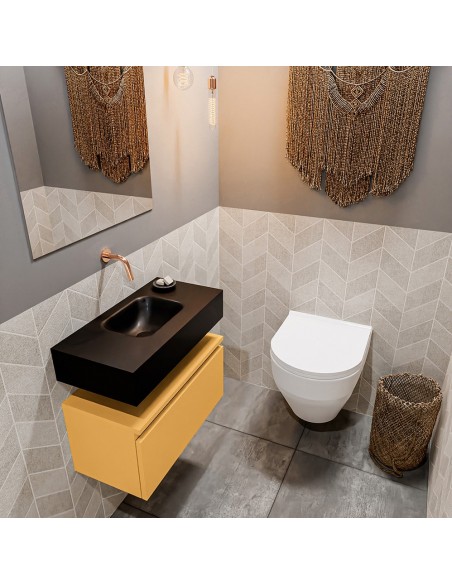 ANDOR Komplet badmiljø centreret håndvask B60 cm MDF - Okker/Sort