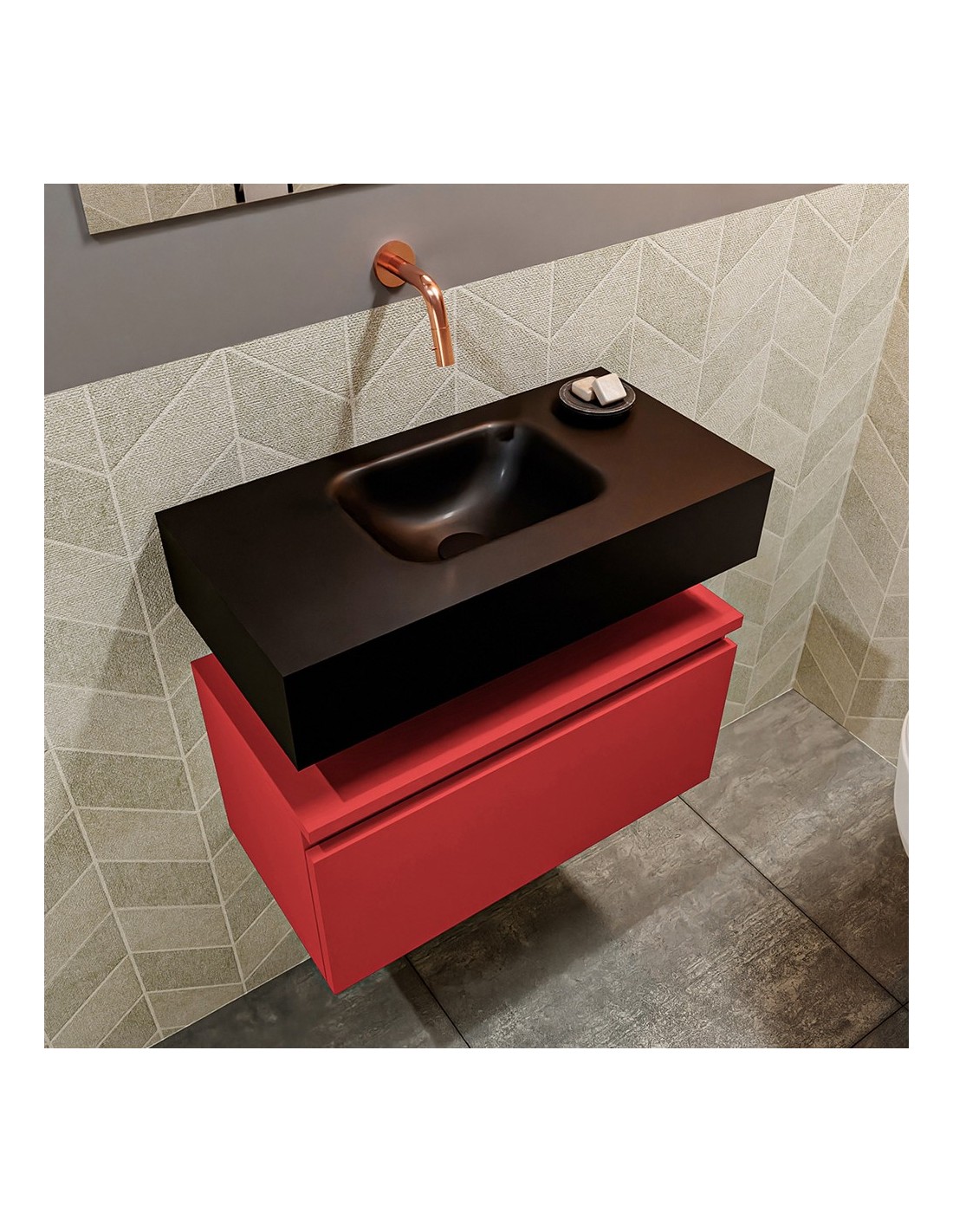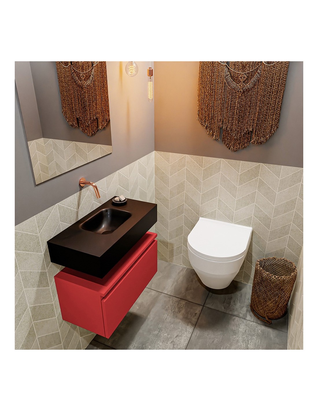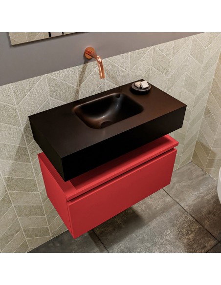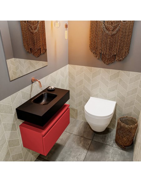 ANDOR Komplet badmiljø centreret håndvask B60 cm MDF - Rød/Sort