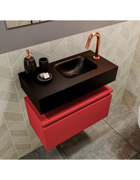 ANDOR Komplet badmiljø højrevendt håndvask B60 cm MDF - Rød/Sort