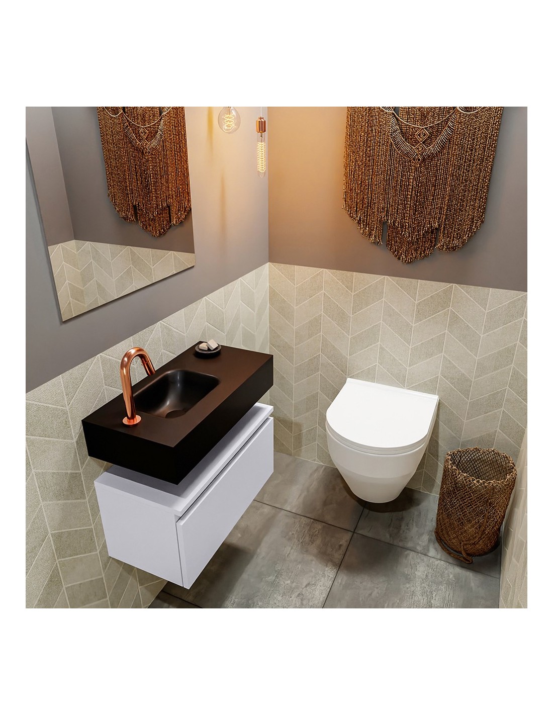 ANDOR Komplet badmiljø venstrevendt håndvask B60 cm MDF - Svag grå/Sort