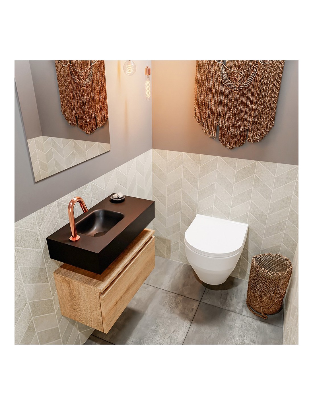 ANDOR Komplet badmiljø venstrevendt håndvask B60 cm MDF - Vasket eg/Sort