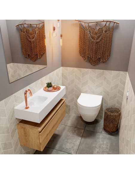 ANDOR Komplet badmiljø venstrevendt håndvask B80 cm MDF - Vasket eg/Talkum