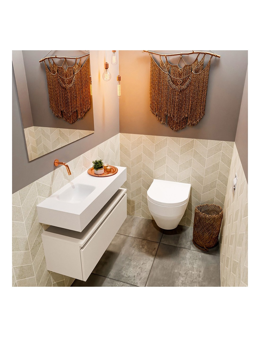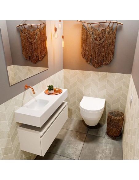 ANDOR Komplet badmiljø venstrevendt håndvask B80 cm MDF - Linned/Talkum