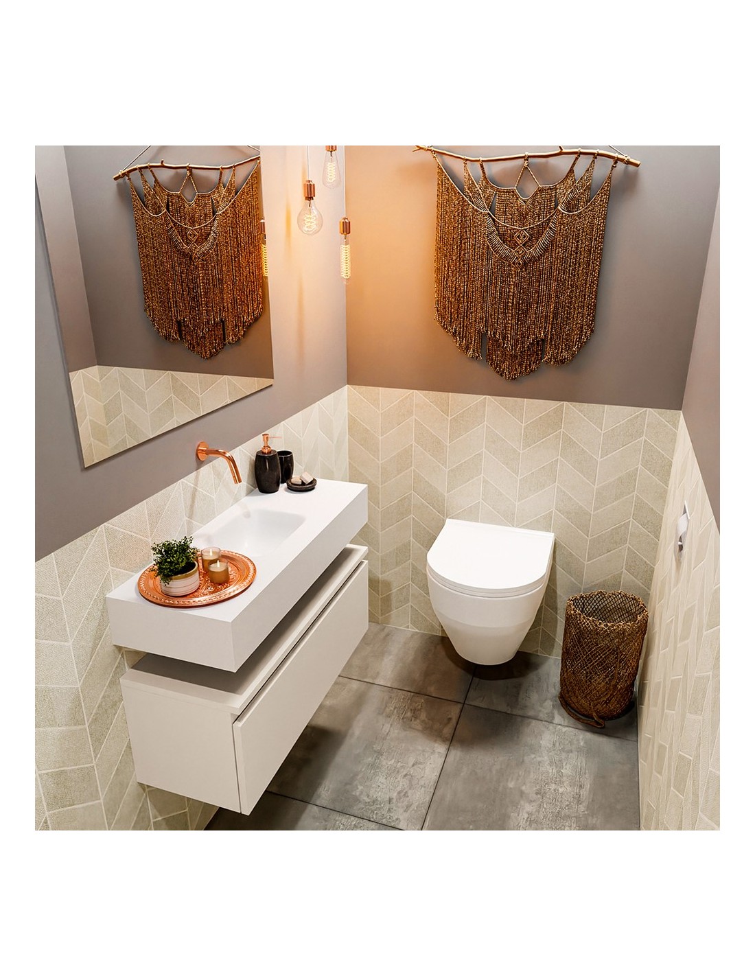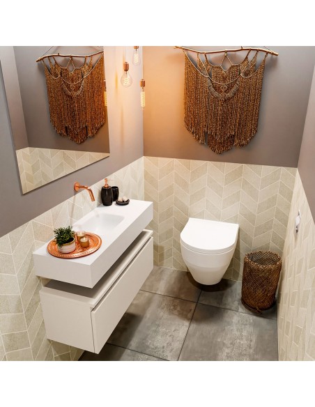 ANDOR Komplet badmiljø centreret håndvask B80 cm MDF - Linned/Talkum