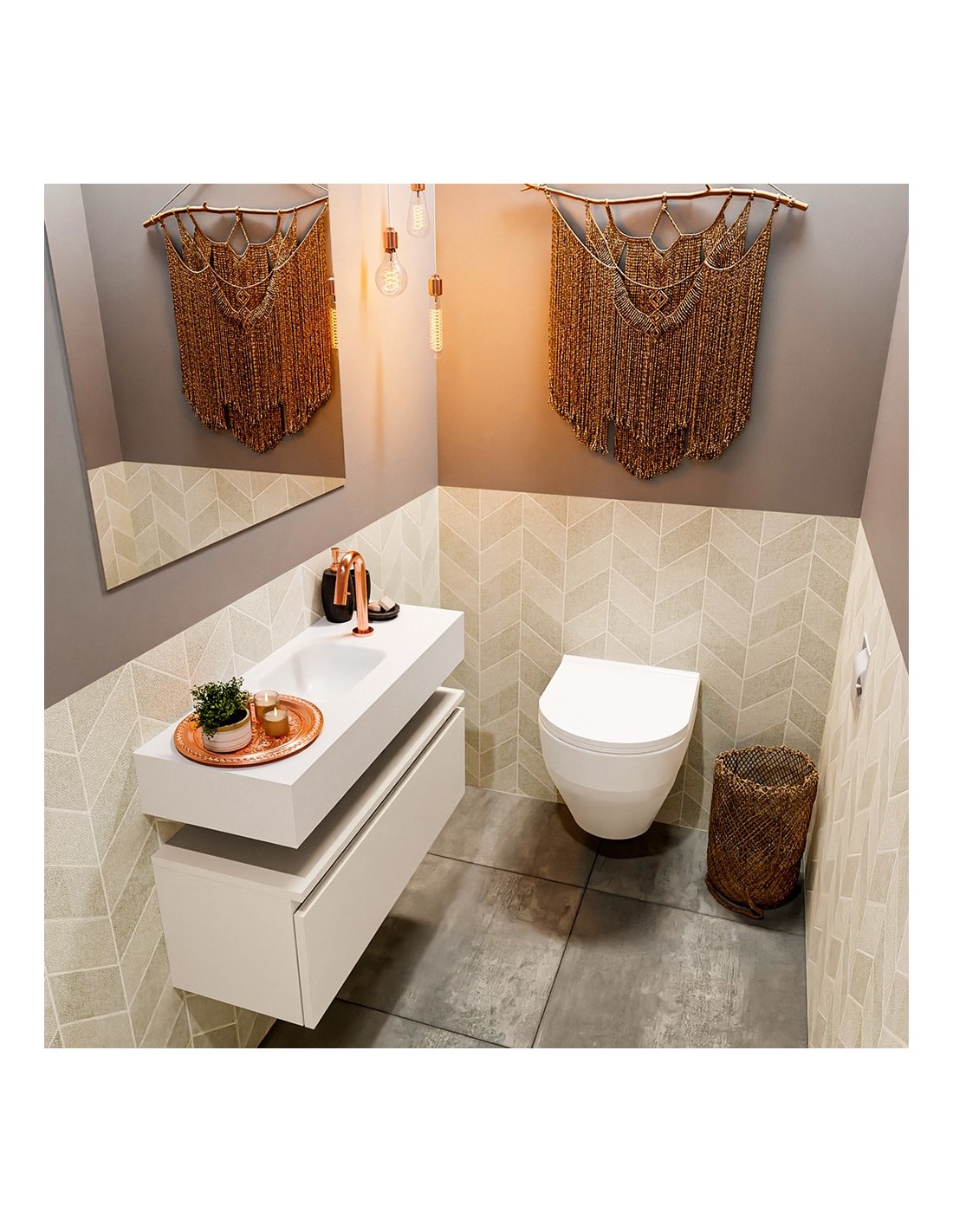 ANDOR Komplet badmiljø centreret håndvask B80 cm MDF - Linned/Talkum