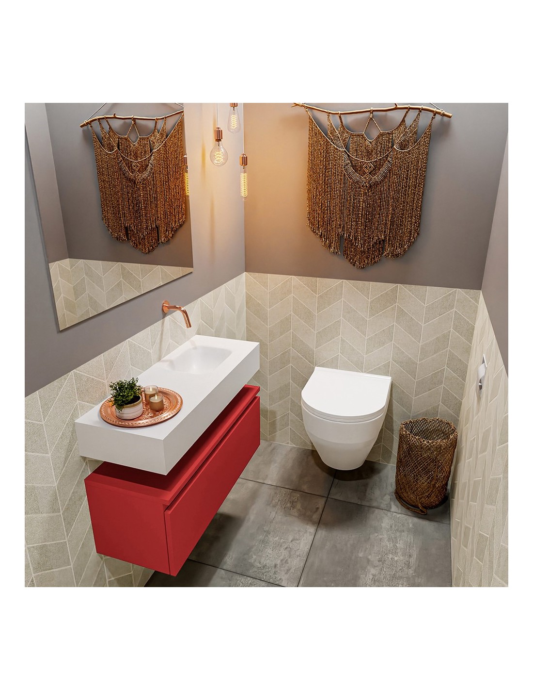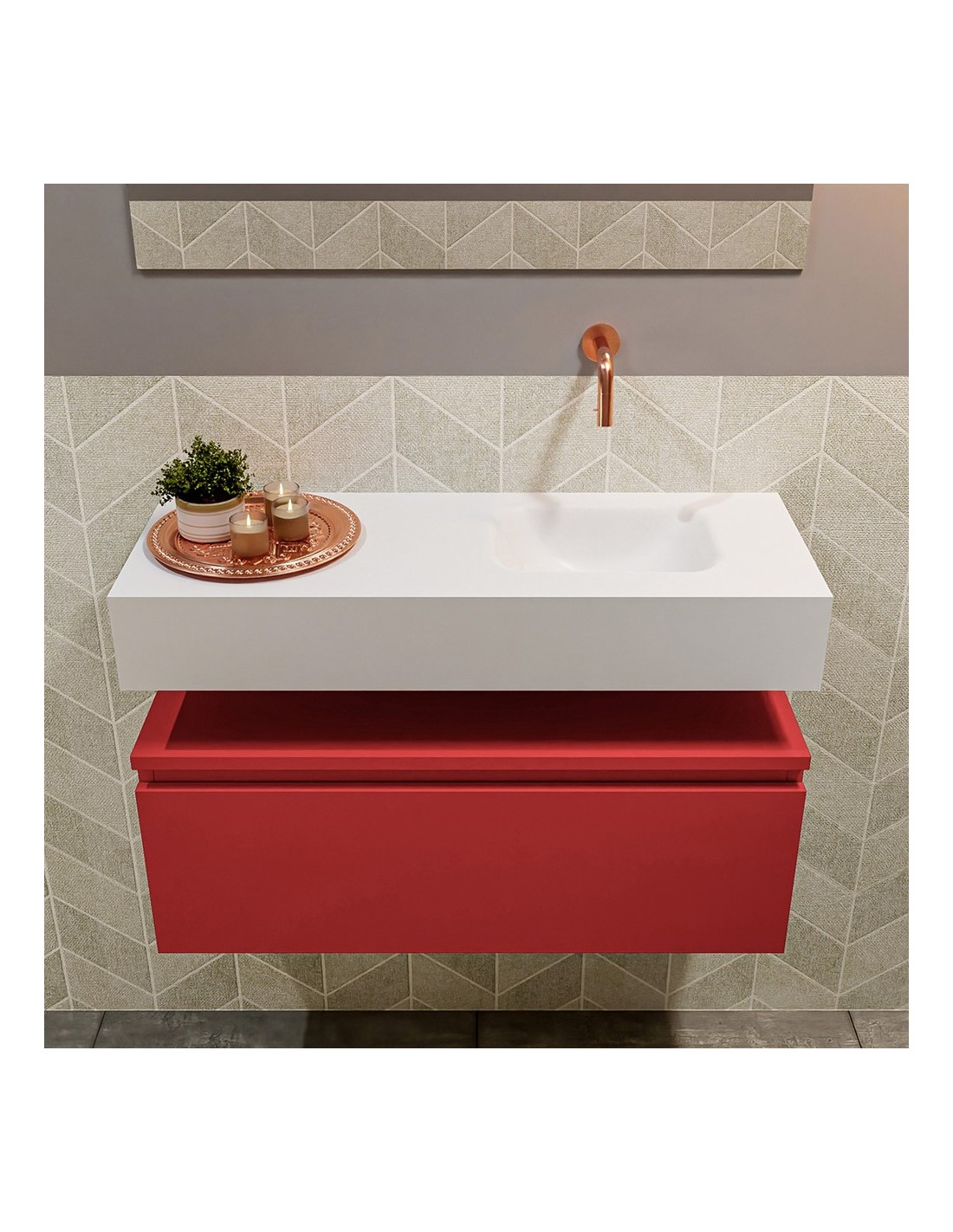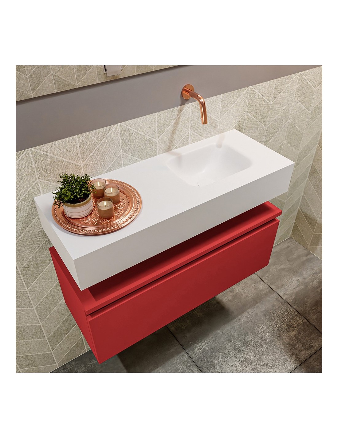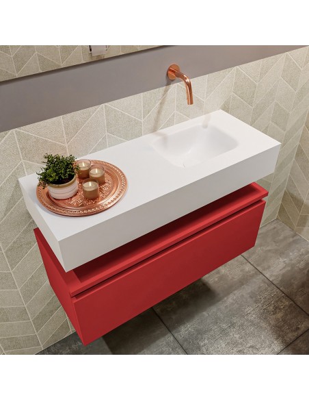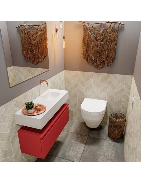 ANDOR Komplet badmiljø højrevendt håndvask B80 cm MDF - Rød/Talkum