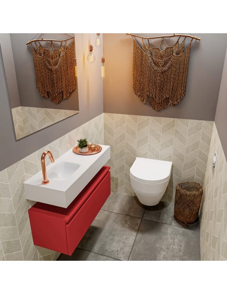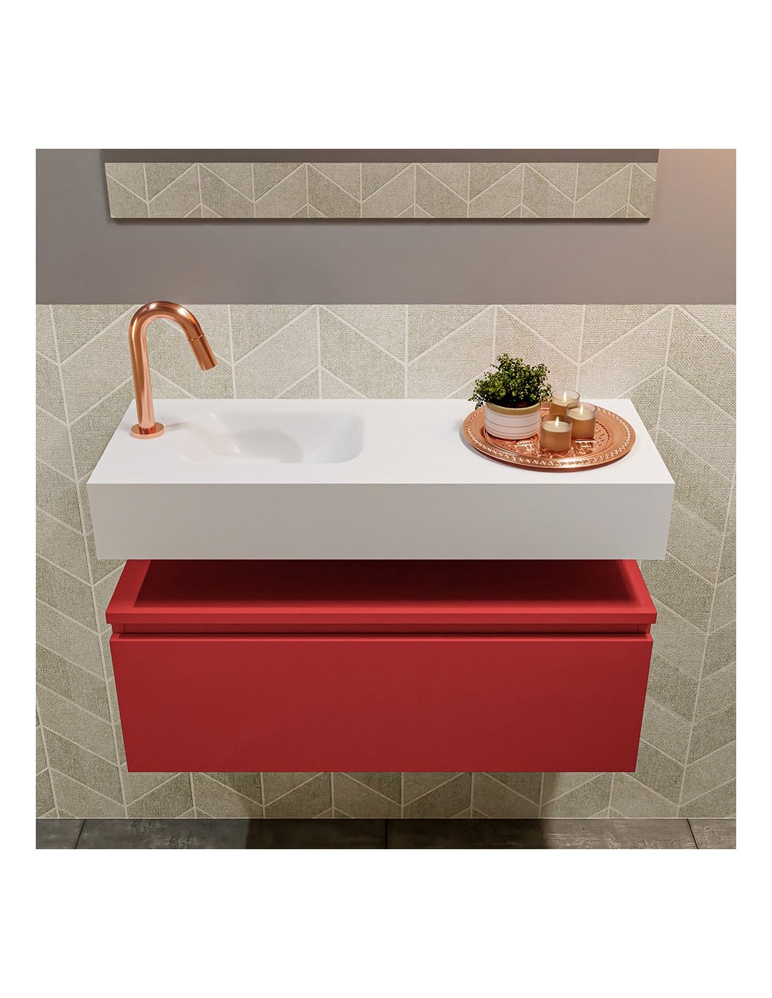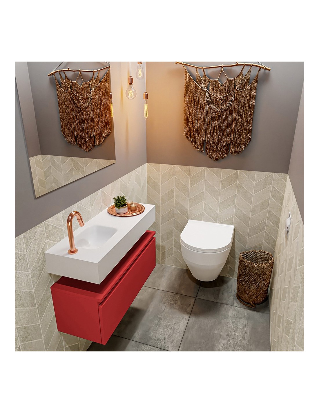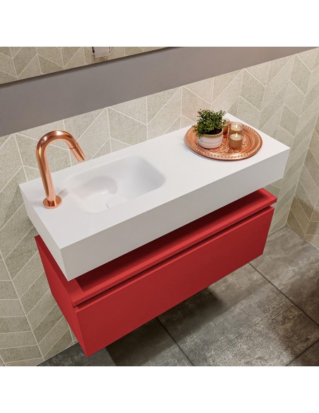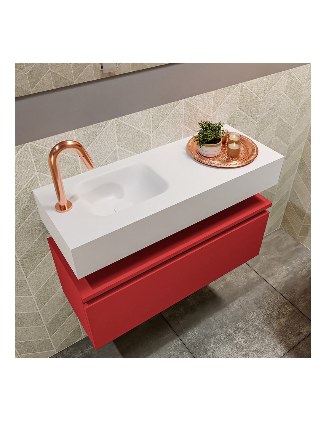 ANDOR Komplet badmiljø venstrevendt håndvask B80 cm MDF - Rød/Talkum