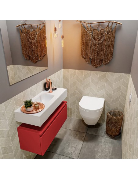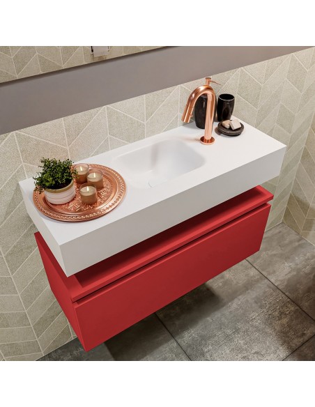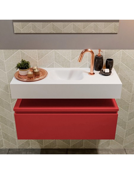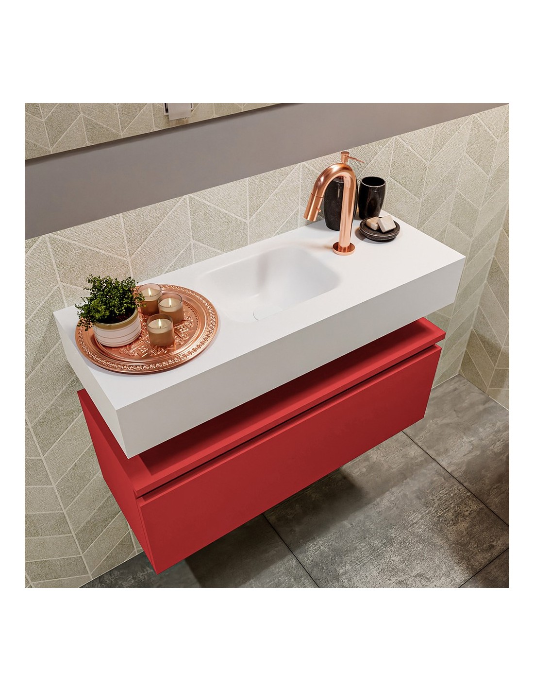 ANDOR Komplet badmiljø centreret håndvask B80 cm MDF - Rød/Talkum