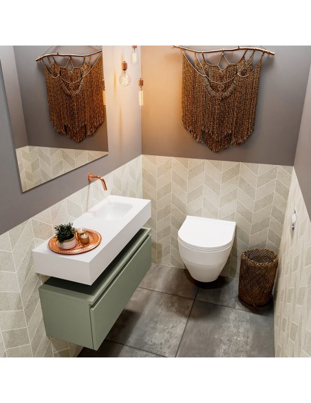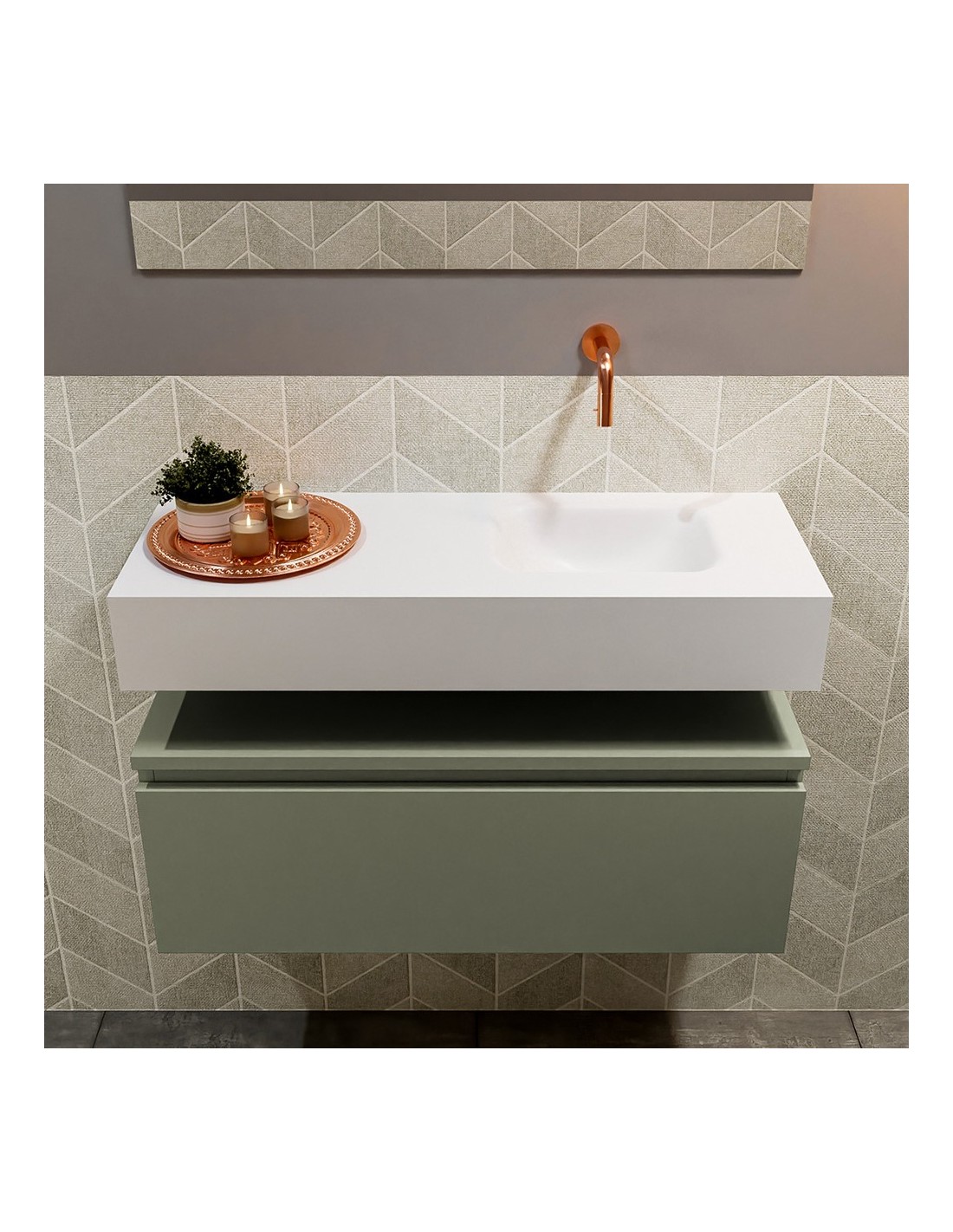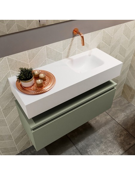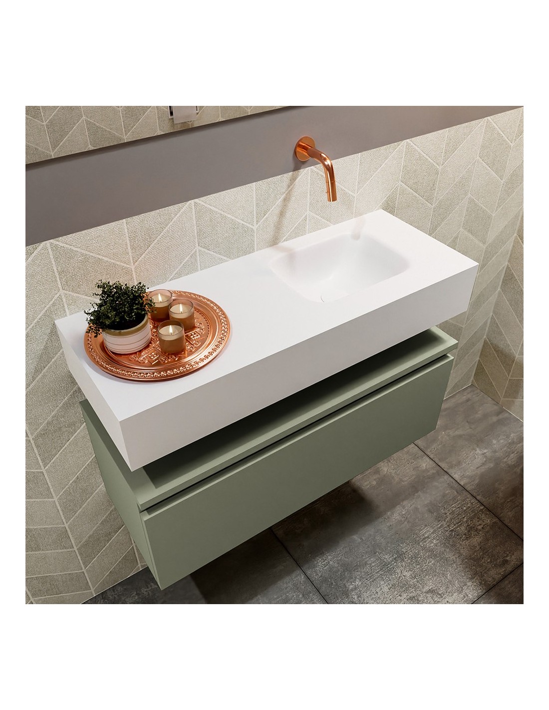 ANDOR Komplet badmiljø højrevendt håndvask B80 cm MDF - Armygrøn/Talkum