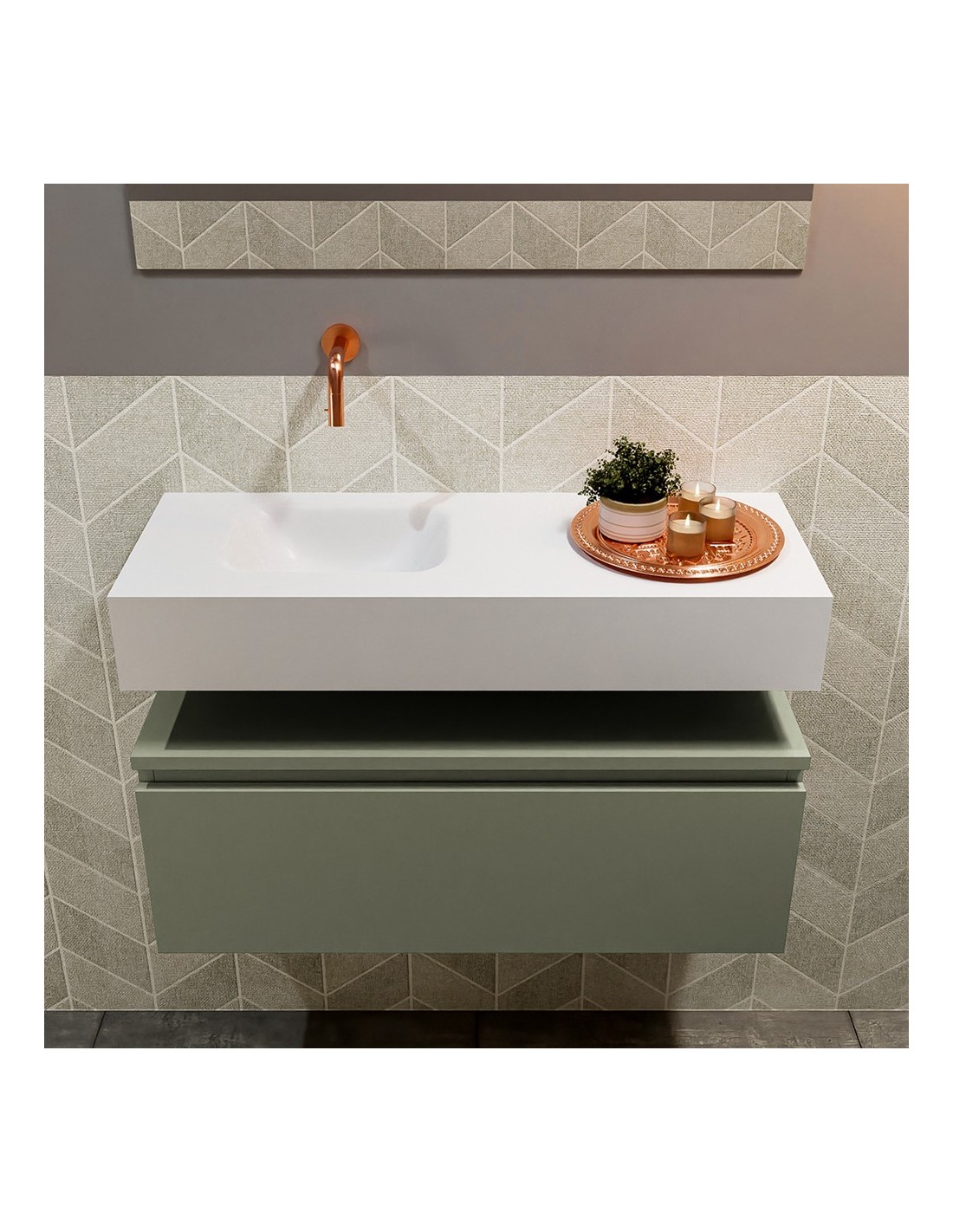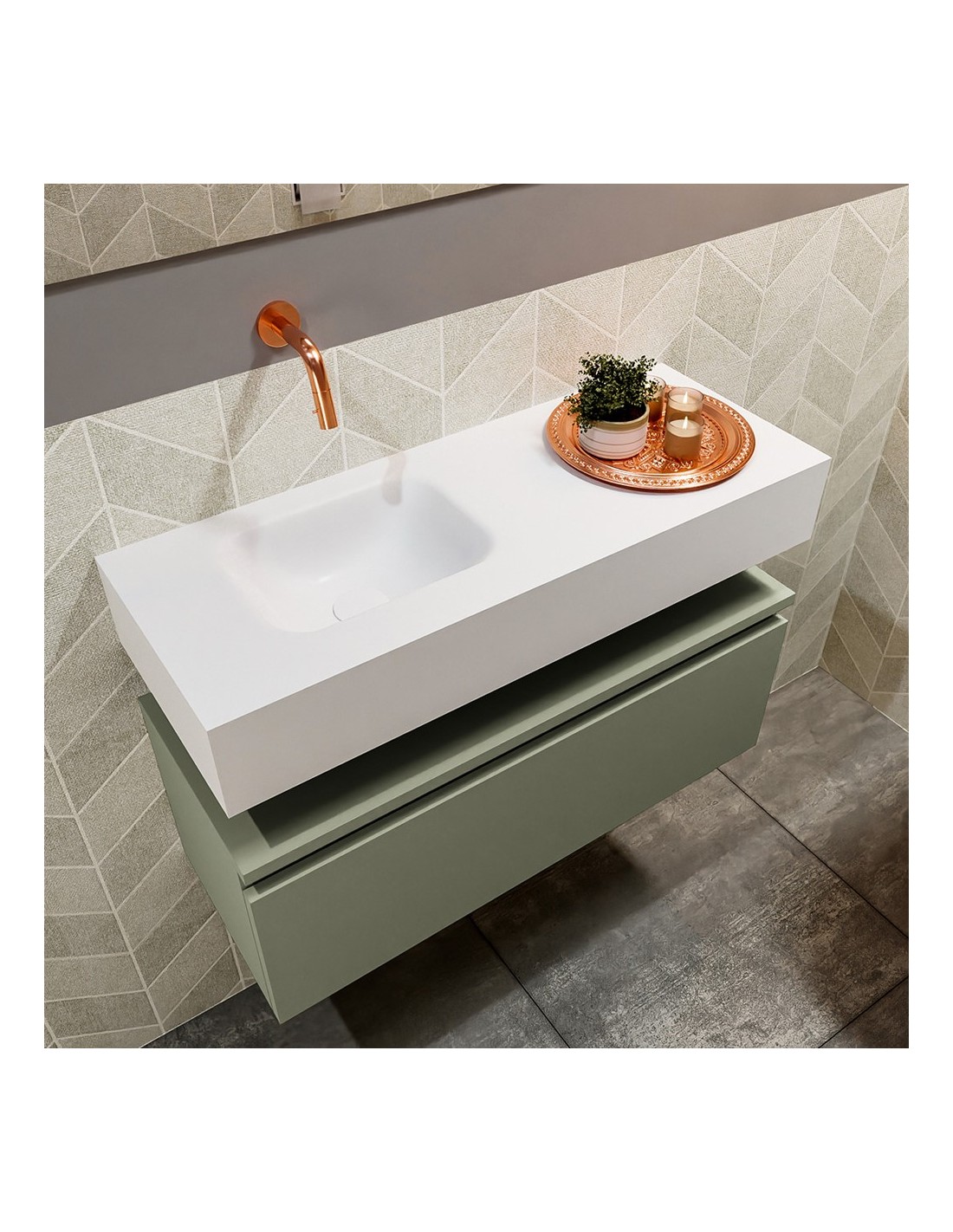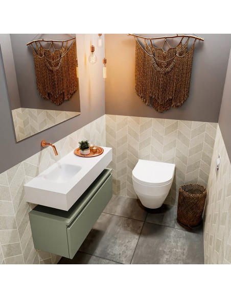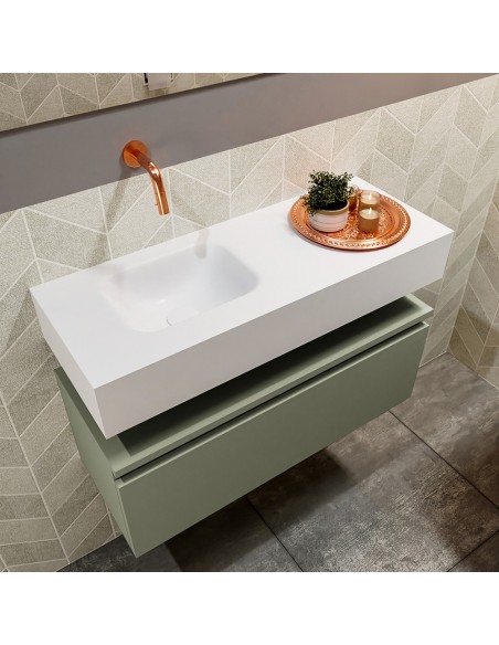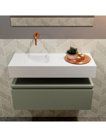ANDOR Komplet badmiljø venstrevendt håndvask B80 cm MDF - Armygrøn/Talkum
