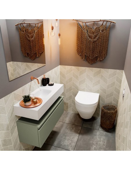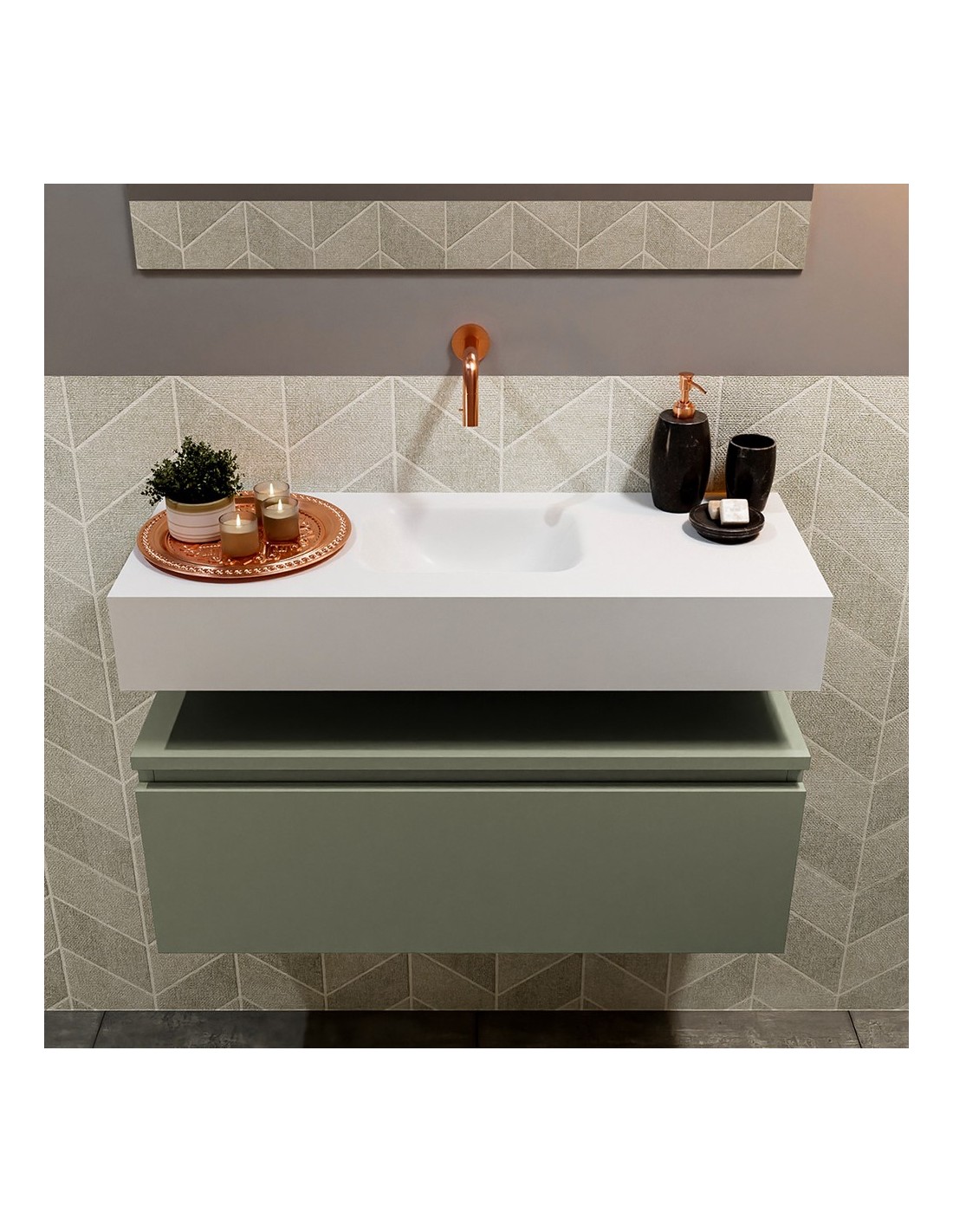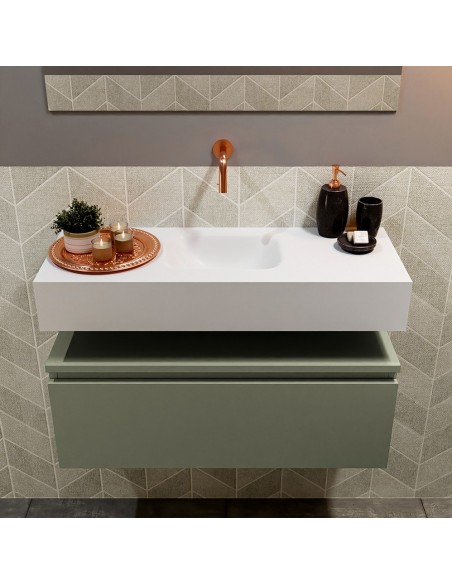 ANDOR Komplet badmiljø centreret håndvask B80 cm MDF - Armygrøn/Talkum