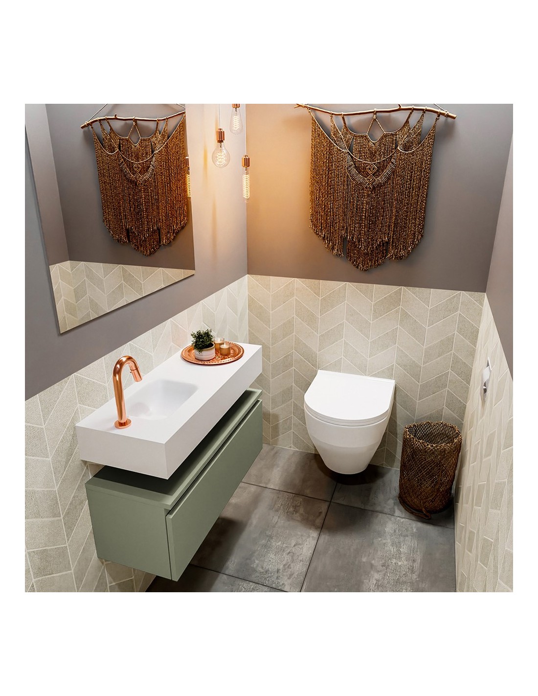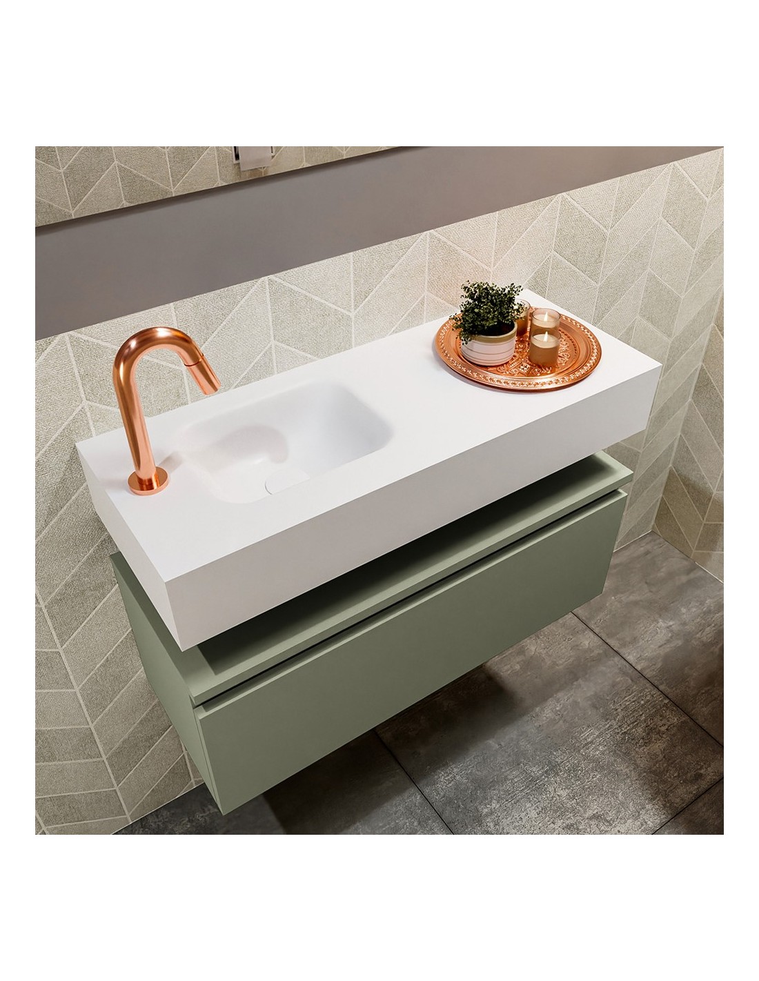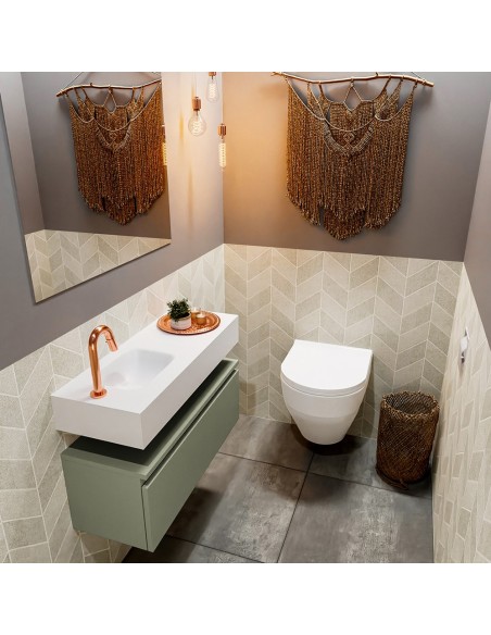 ANDOR Komplet badmiljø venstrevendt håndvask B80 cm MDF - Armygrøn/Talkum