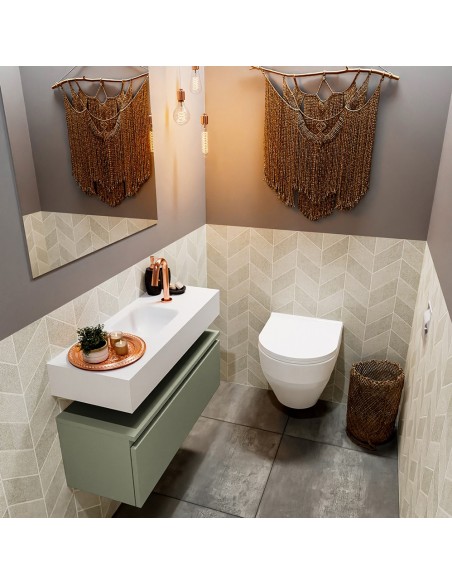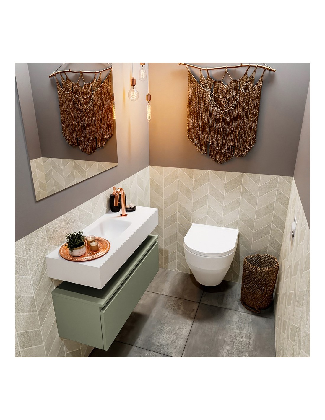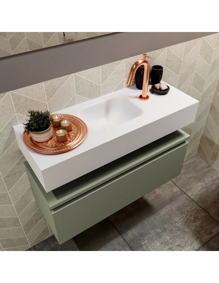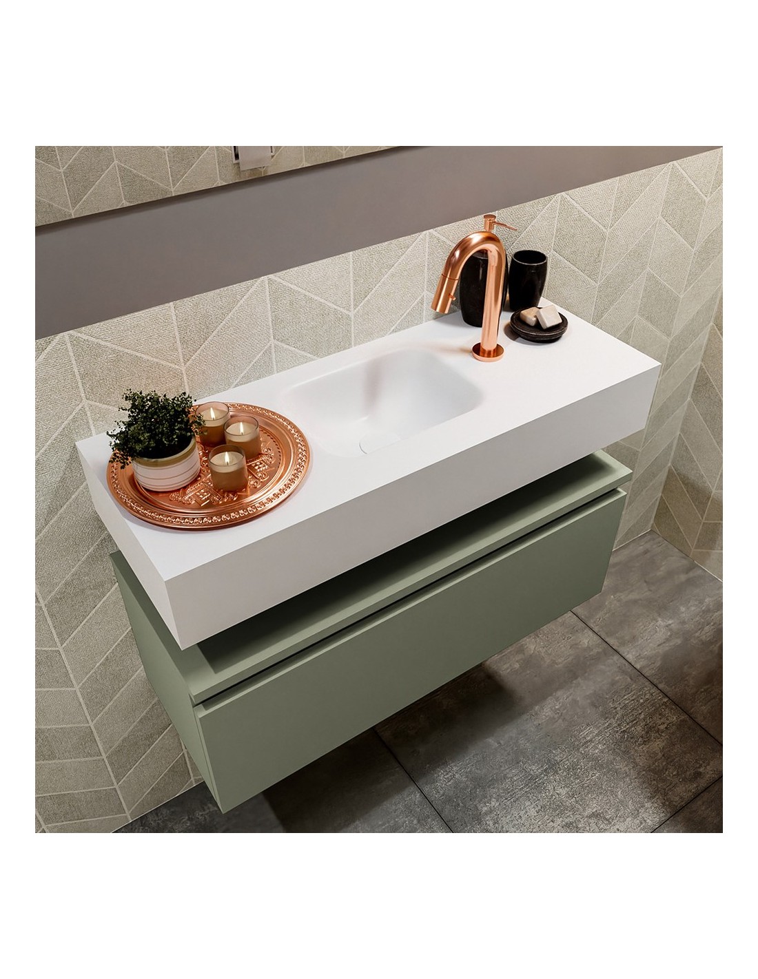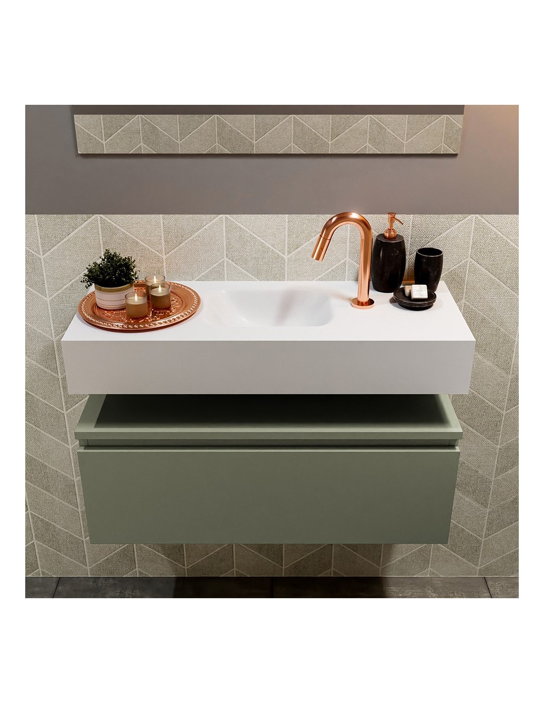 ANDOR Komplet badmiljø centreret håndvask B80 cm MDF - Armygrøn/Talkum