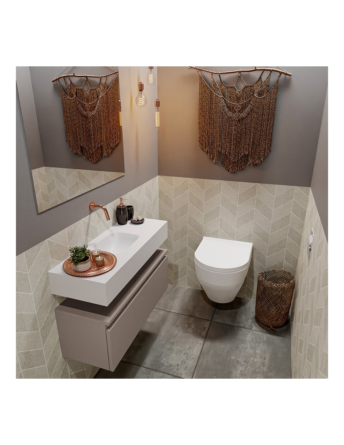 ANDOR Komplet badmiljø centreret håndvask B80 cm MDF - Røg/Talkum