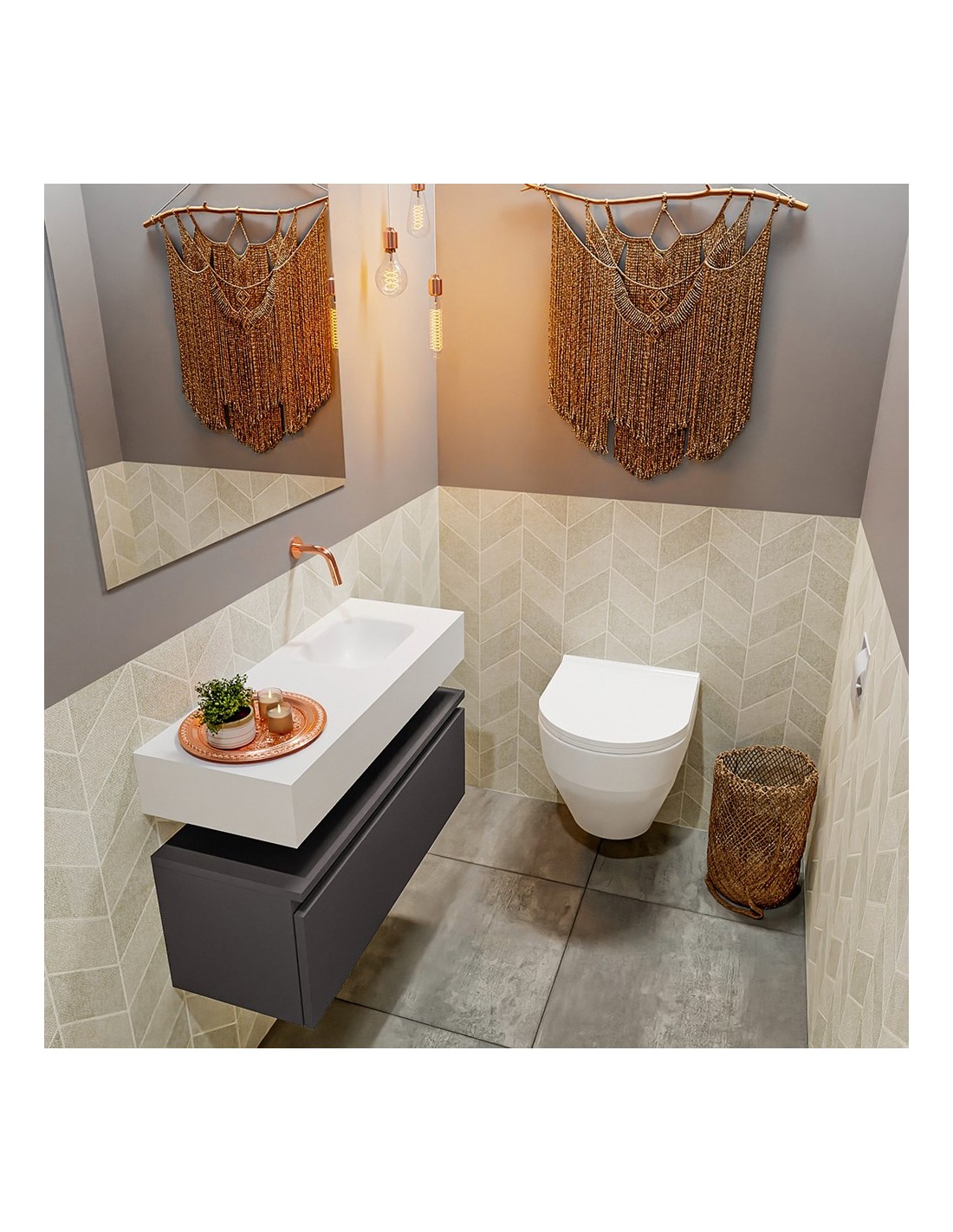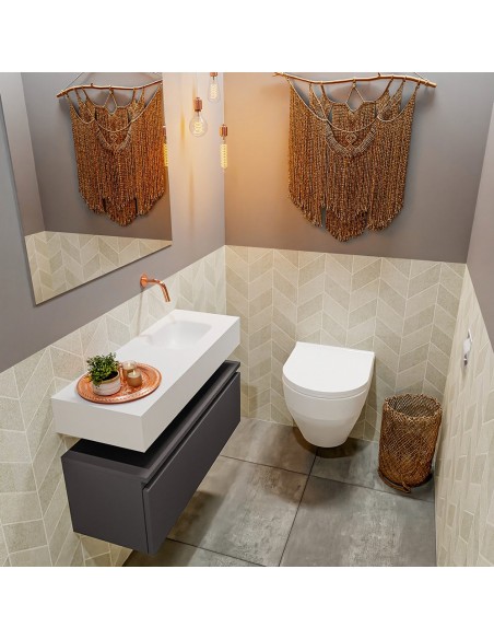 ANDOR Komplet badmiljø højrevendt håndvask B80 cm MDF - Mørkegrå/Talkum