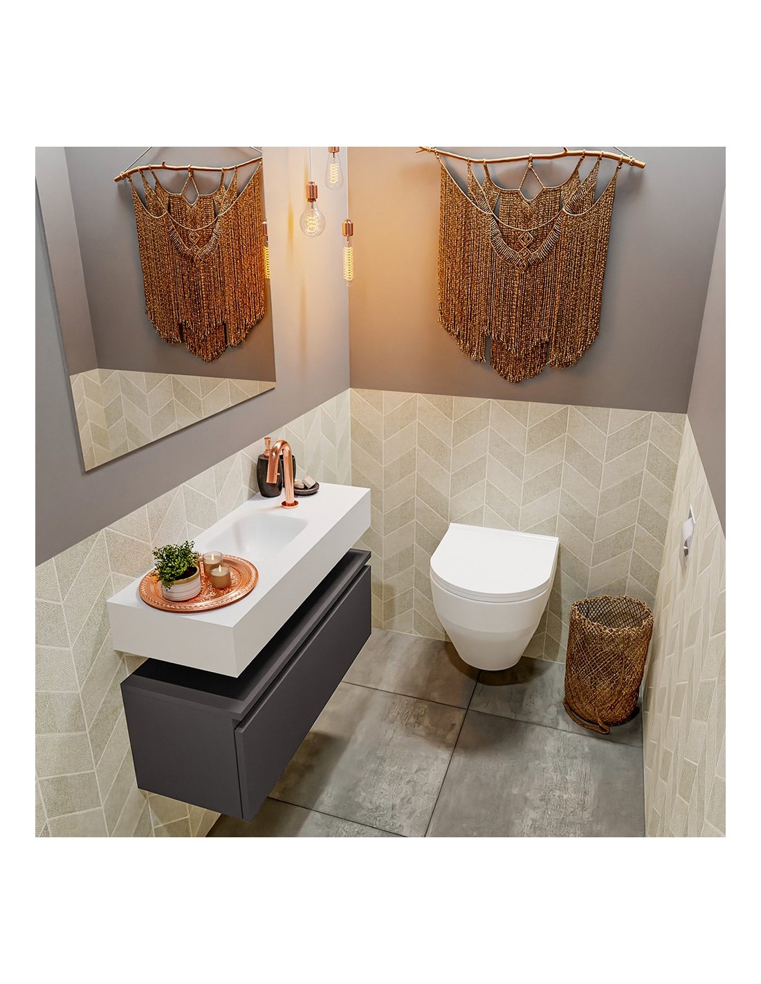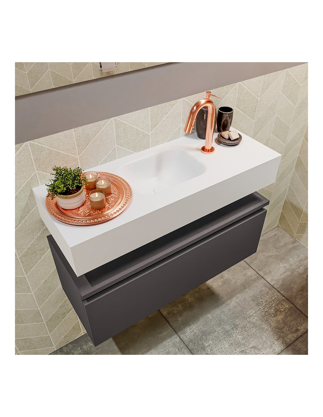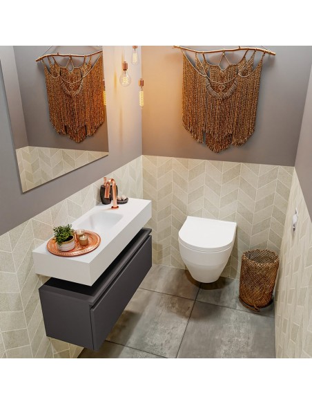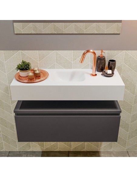 ANDOR Komplet badmiljø centreret håndvask B80 cm MDF - Mørkegrå/Talkum