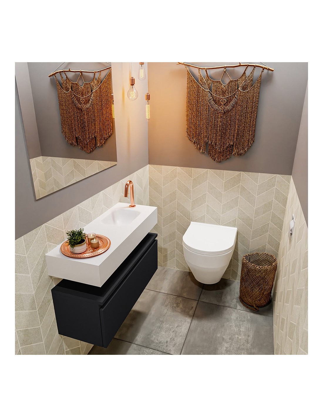 ANDOR Komplet badmiljø højrevendt håndvask B80 cm MDF - Sort/Talkum