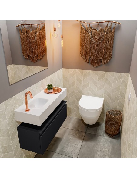 ANDOR Komplet badmiljø venstrevendt håndvask B80 cm MDF - Sort/Talkum
