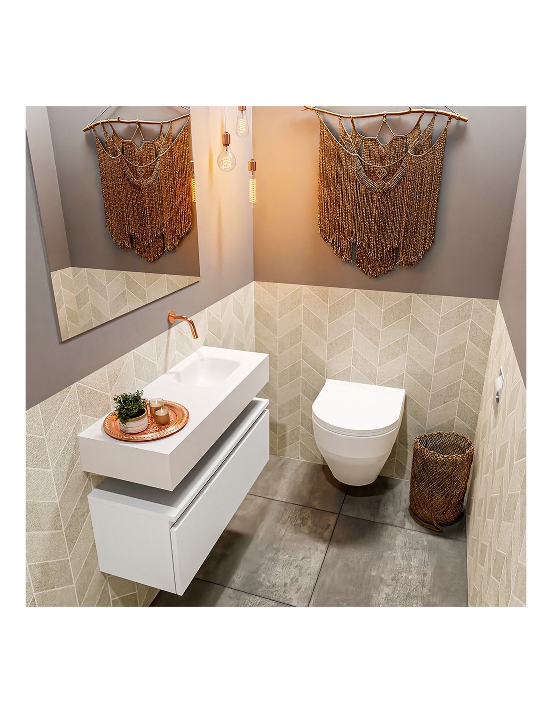 ANDOR Komplet badmiljø højrevendt håndvask B80 cm MDF - Talkum/Talkum