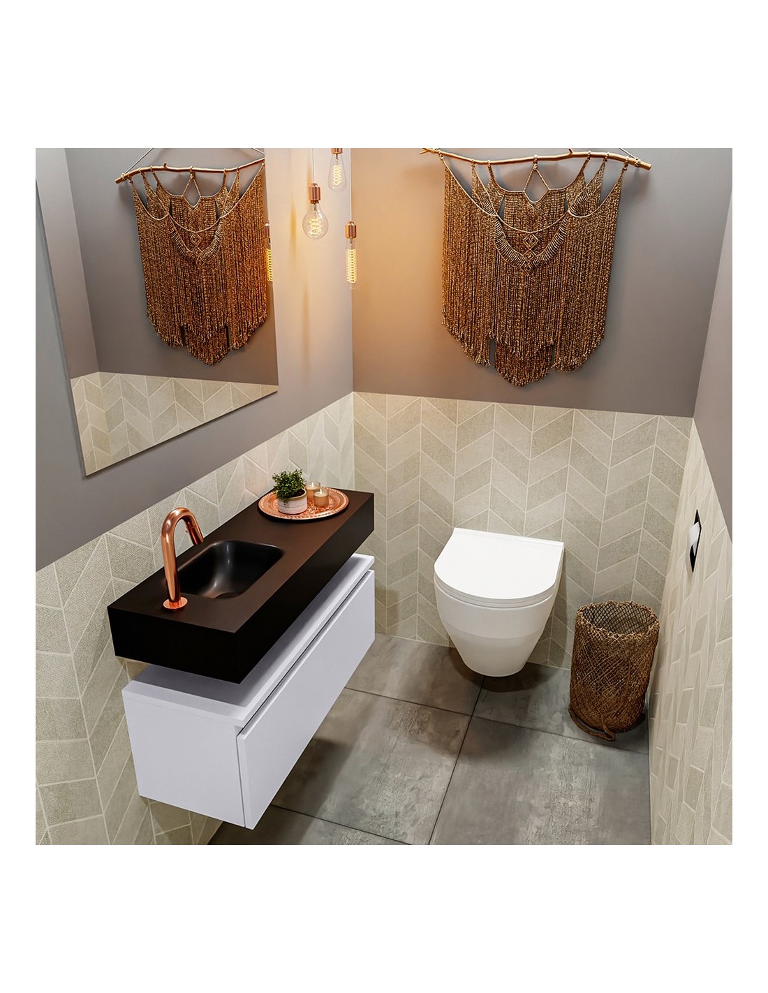 ANDOR Komplet badmiljø venstrevendt håndvask B80 cm MDF - Svag grå/Sort