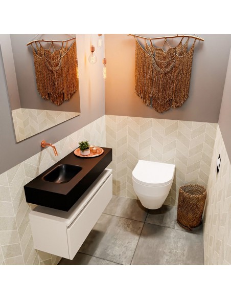 ANDOR Komplet badmiljø venstrevendt håndvask B80 cm MDF - Linned/Sort