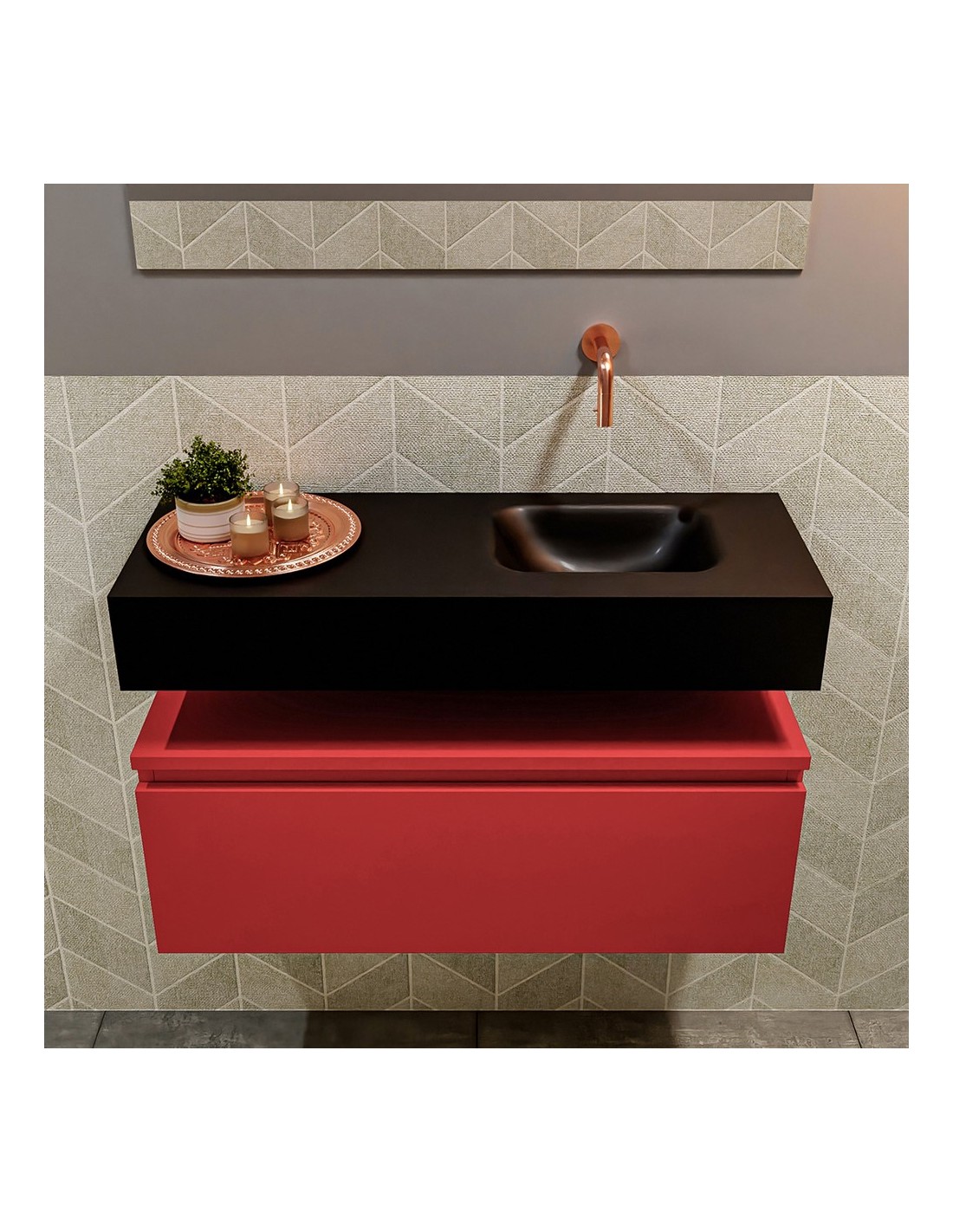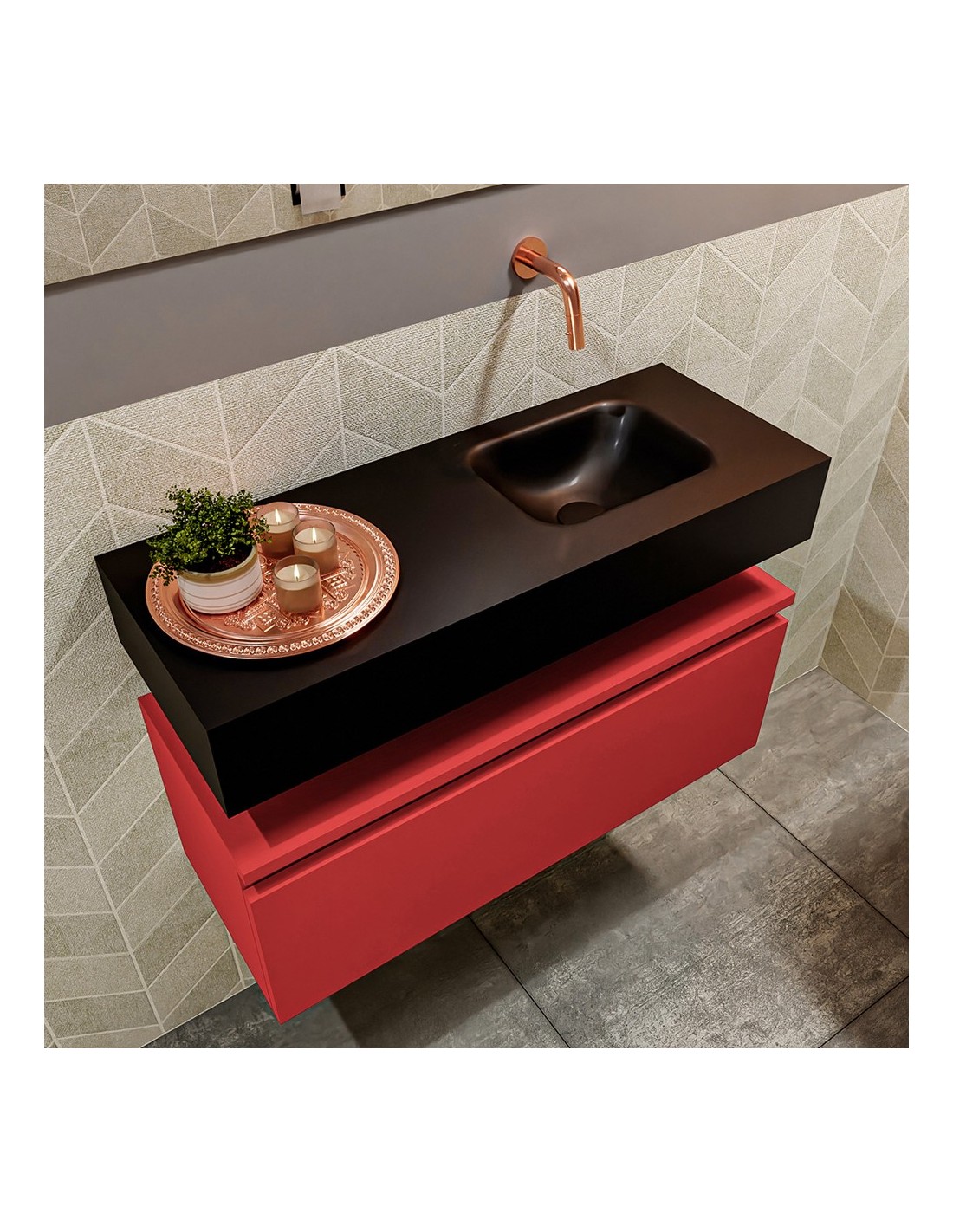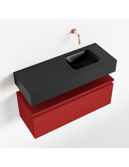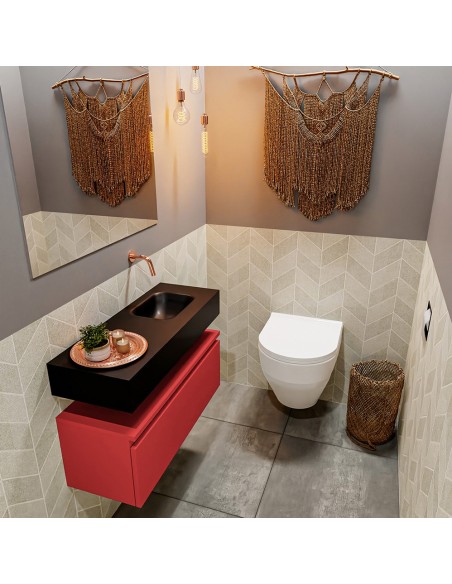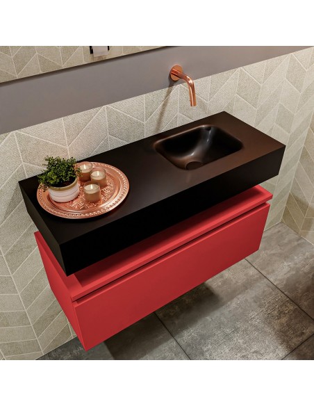 ANDOR Komplet badmiljø højrevendt håndvask B80 cm MDF - Rød/Sort