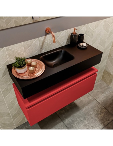 ANDOR Komplet badmiljø centreret håndvask B80 cm MDF - Rød/Sort