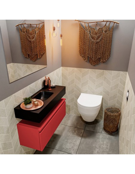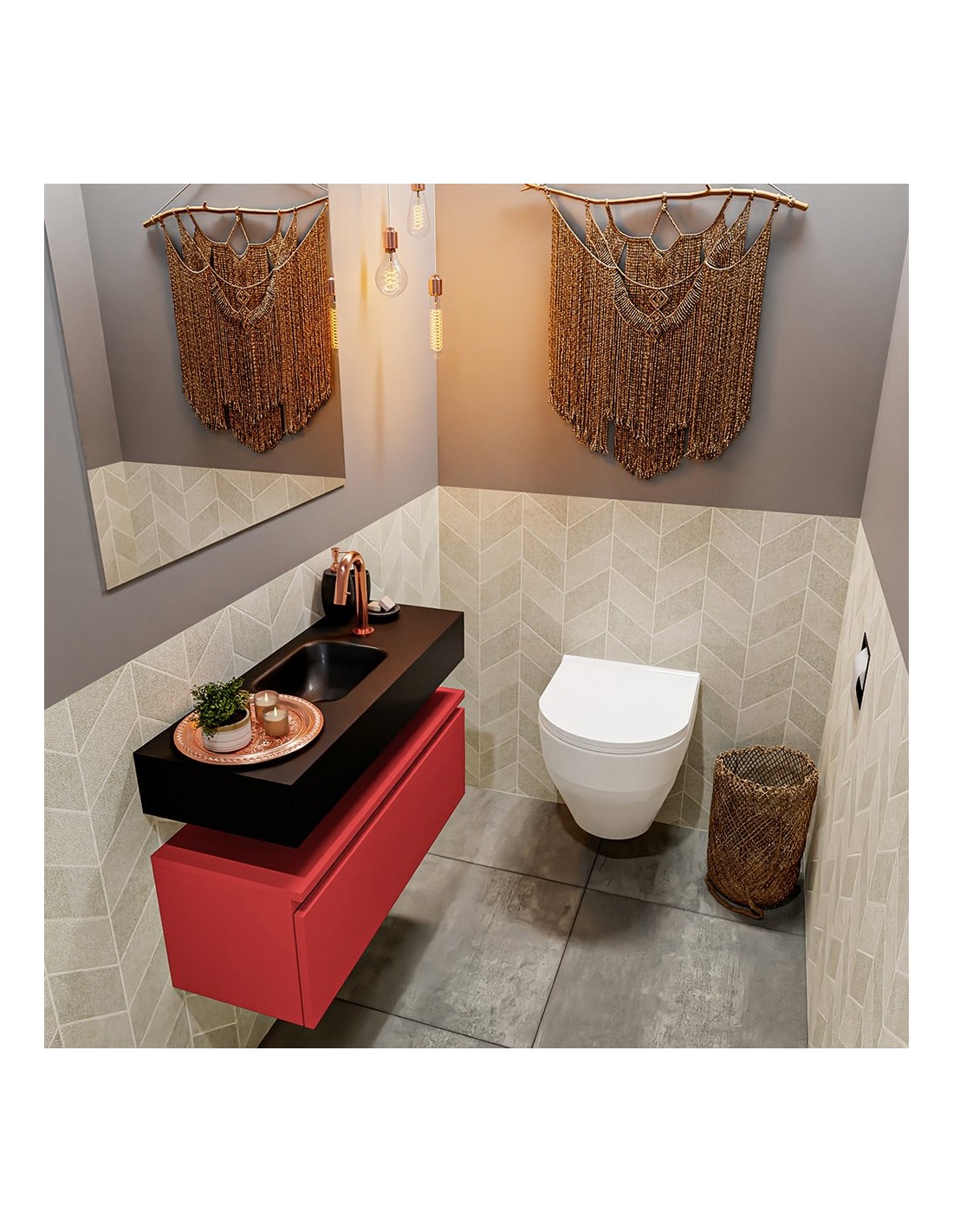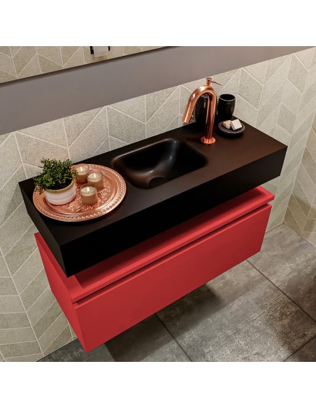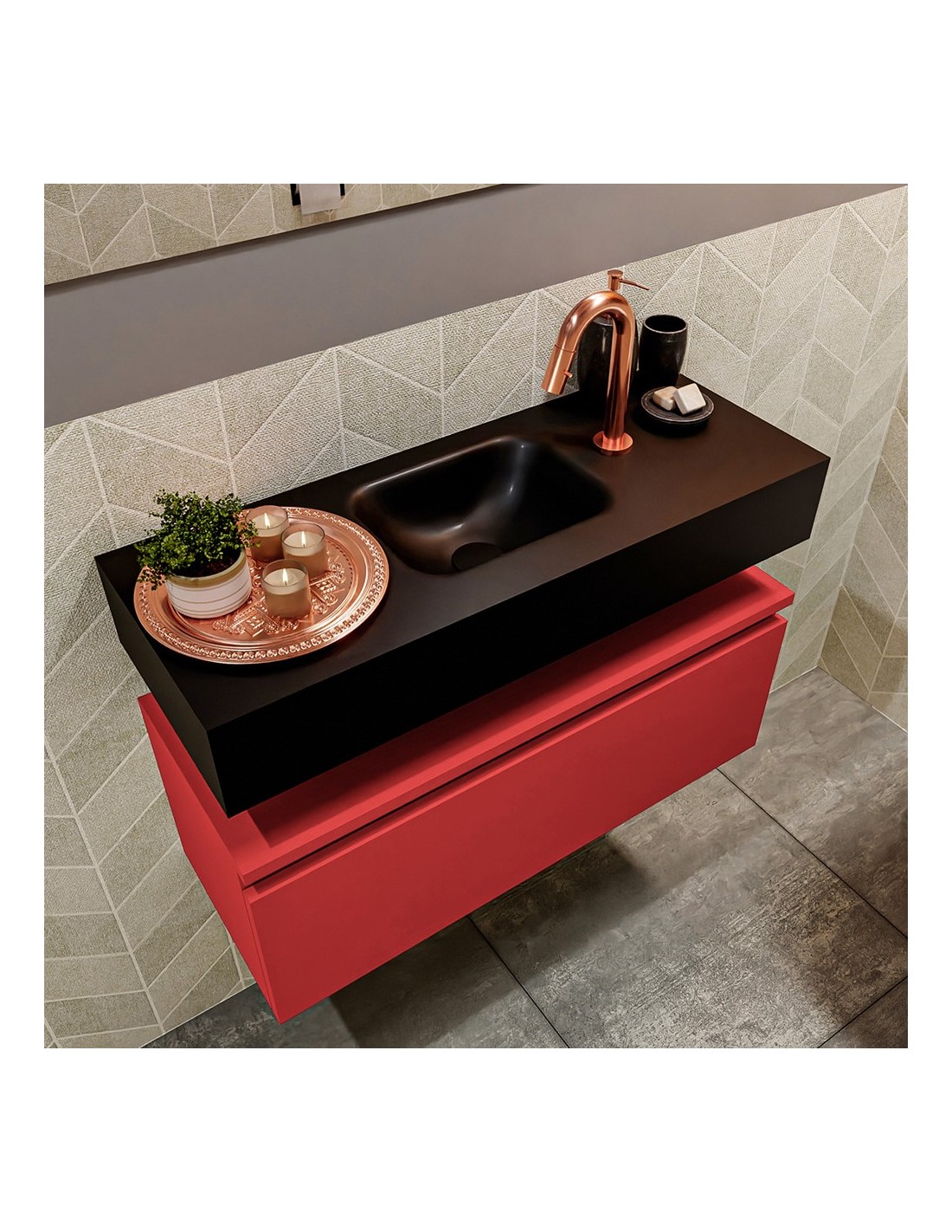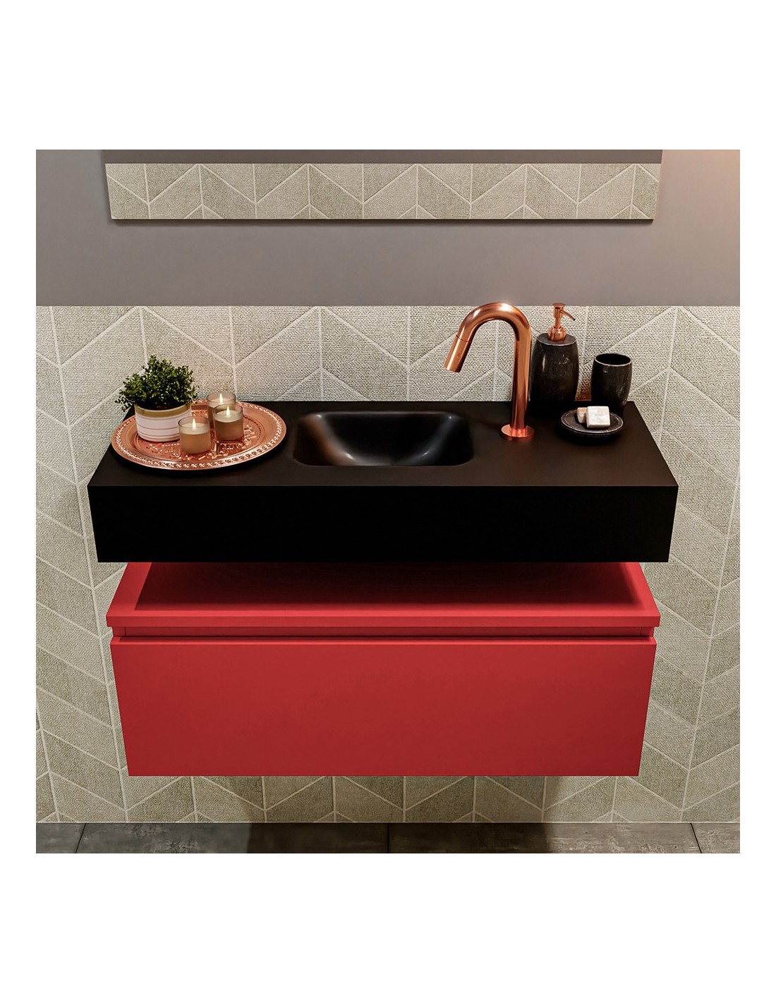 ANDOR Komplet badmiljø centreret håndvask B80 cm MDF - Rød/Sort