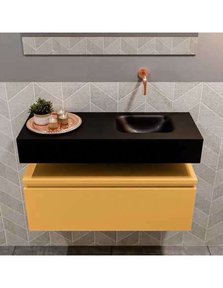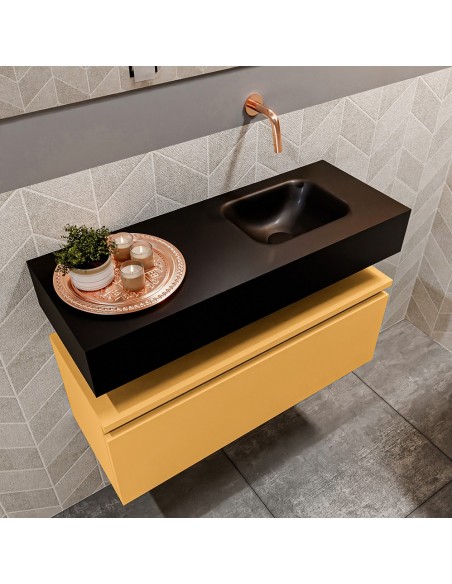 ANDOR Komplet badmiljø højrevendt håndvask B80 cm MDF - Okker/Sort