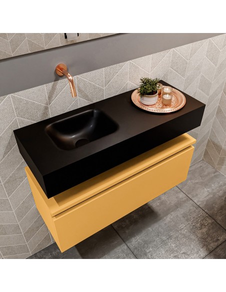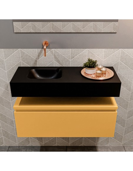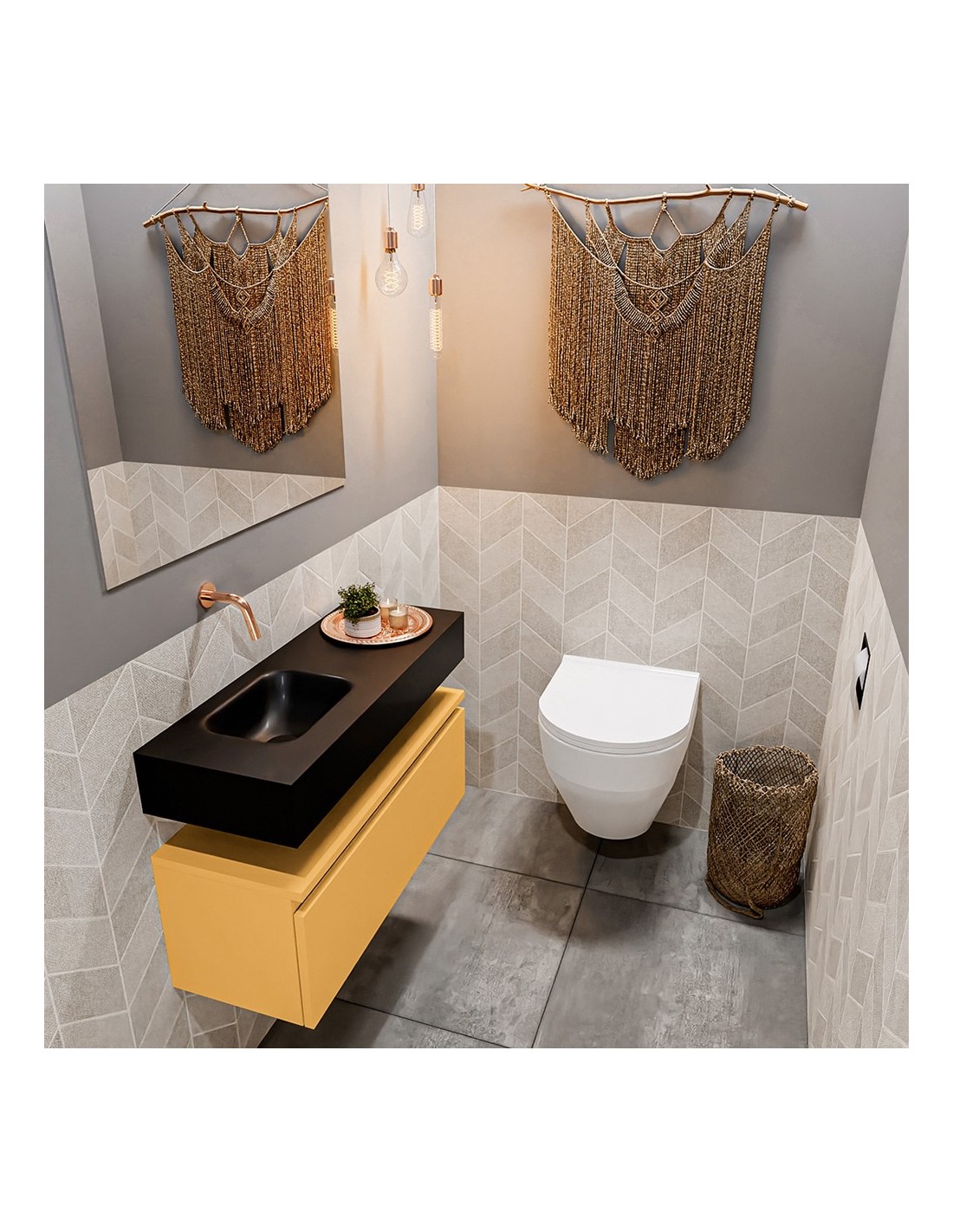 ANDOR Komplet badmiljø venstrevendt håndvask B80 cm MDF - Okker/Sort