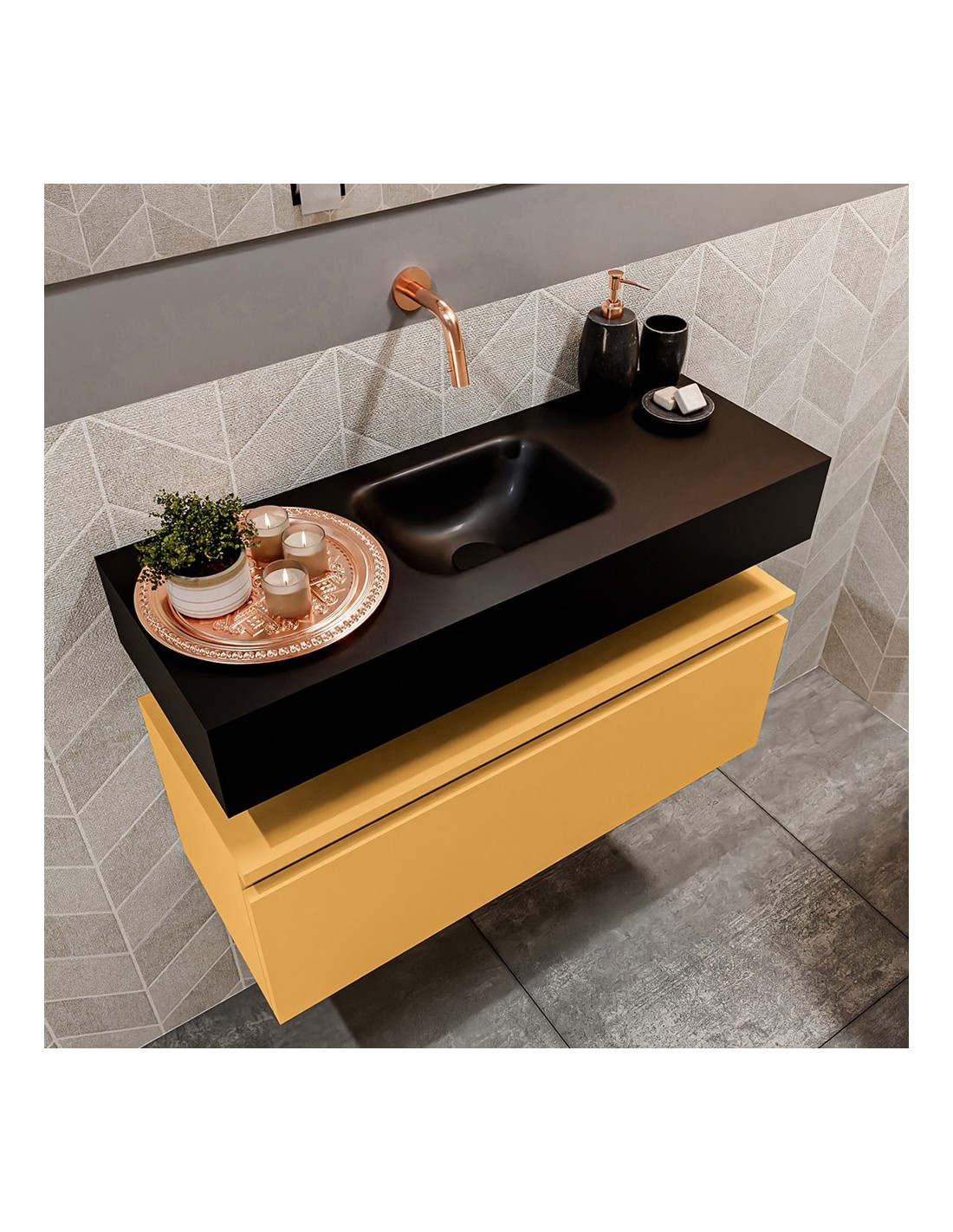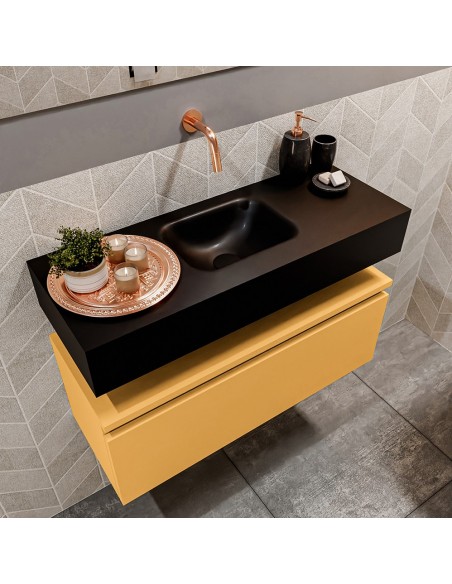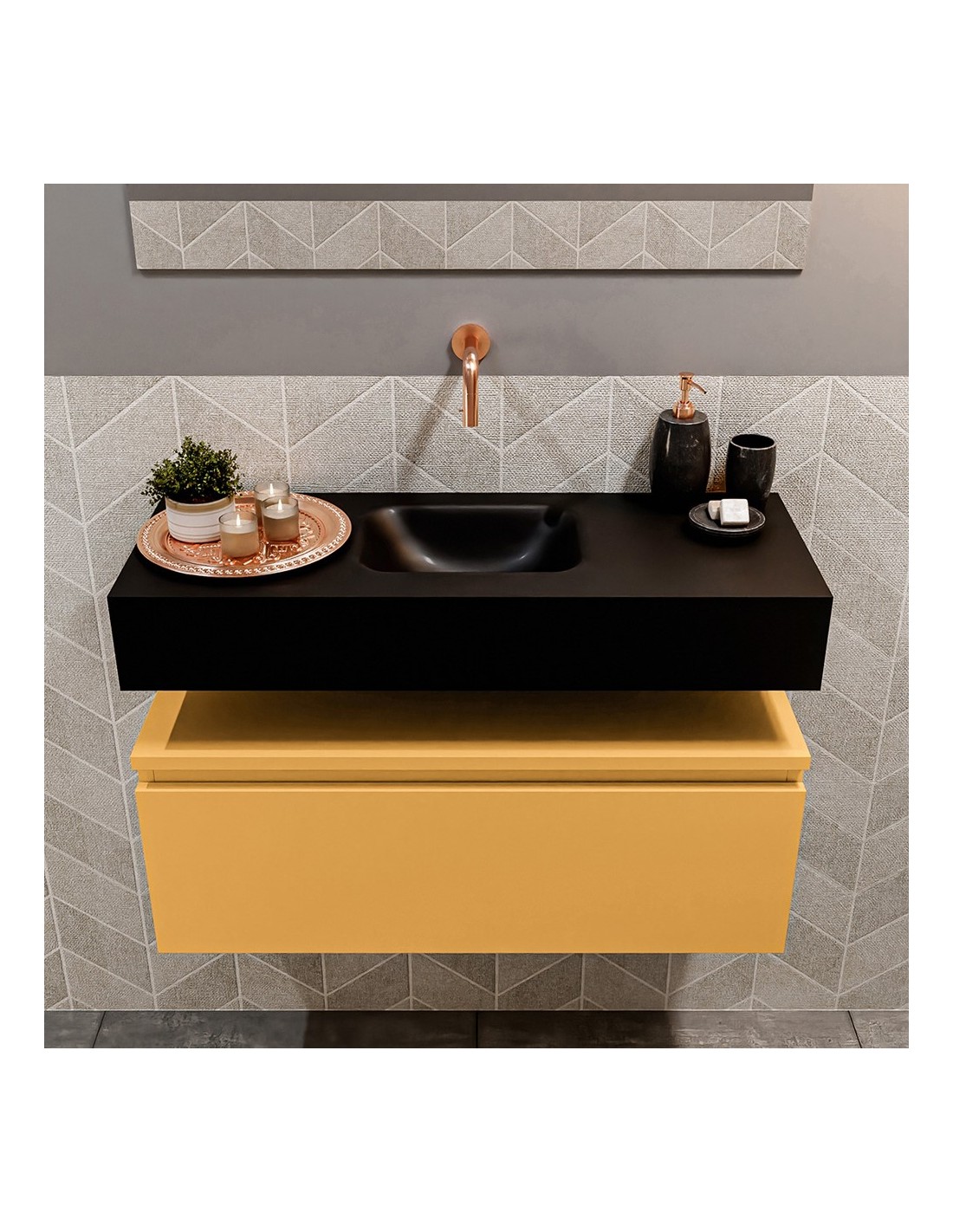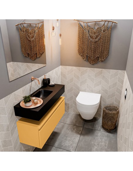 ANDOR Komplet badmiljø centreret håndvask B80 cm MDF - Okker/Sort