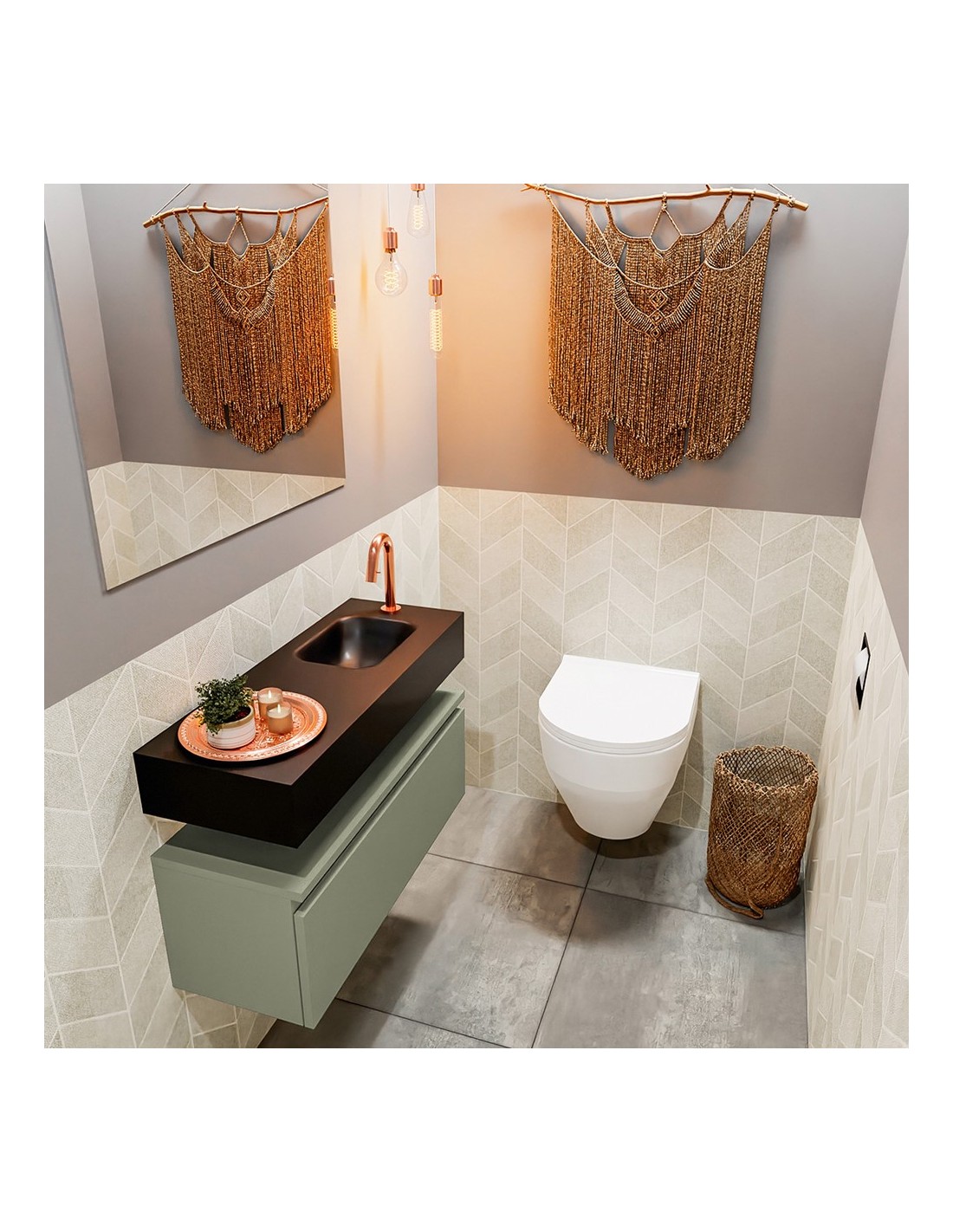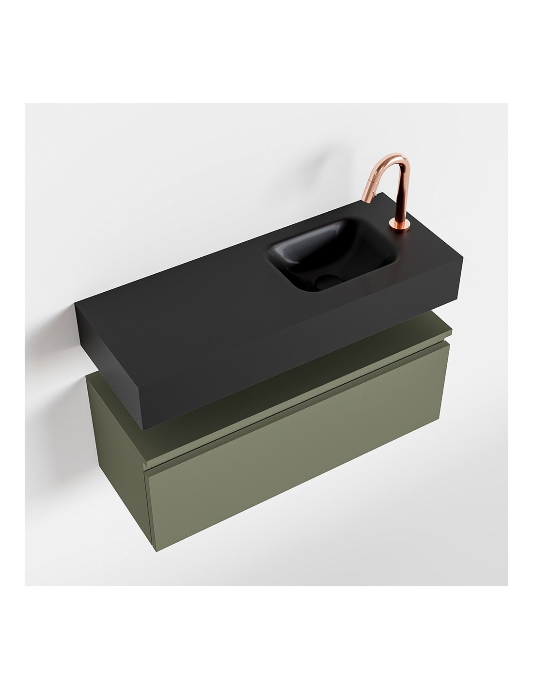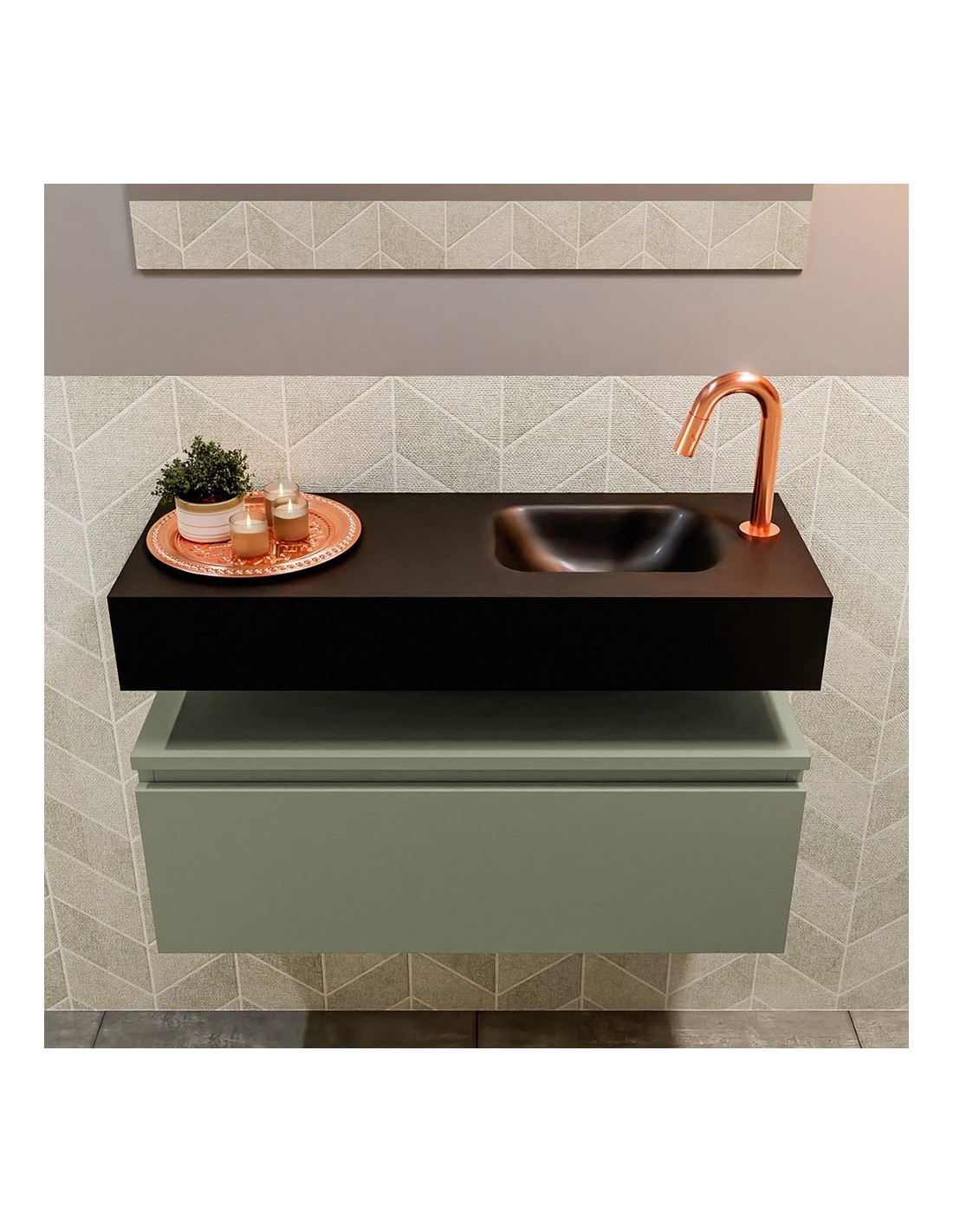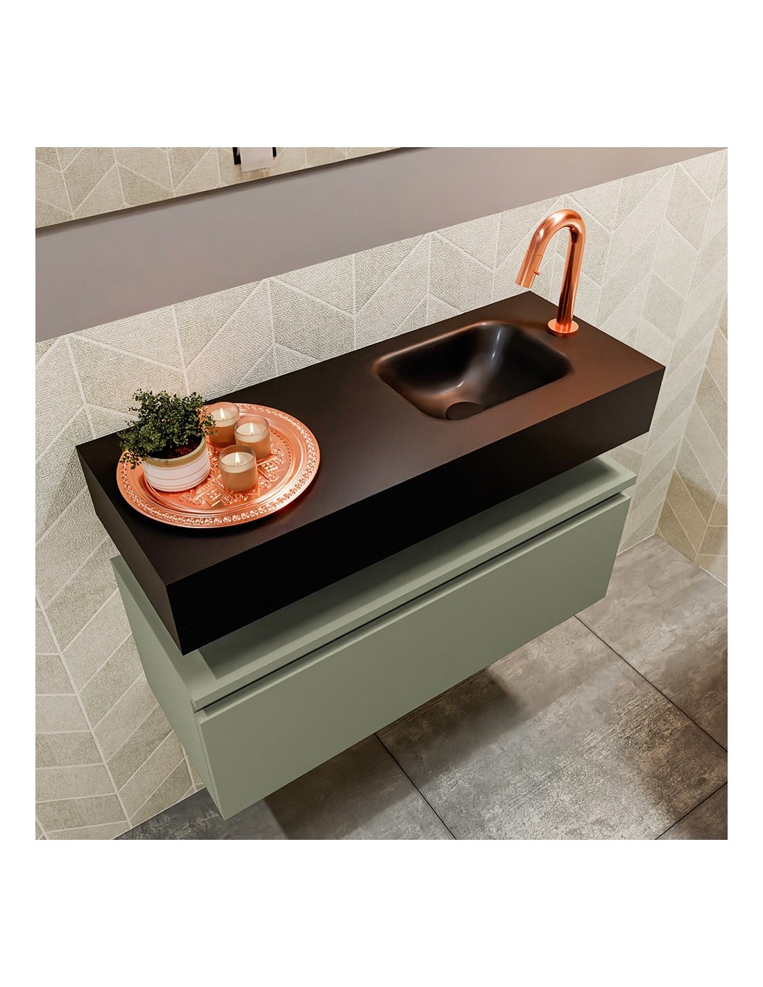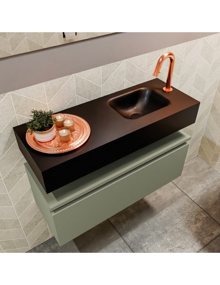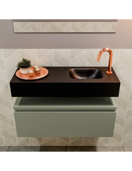 ANDOR Komplet badmiljø højrevendt håndvask B80 cm MDF - Armygrøn/Sort