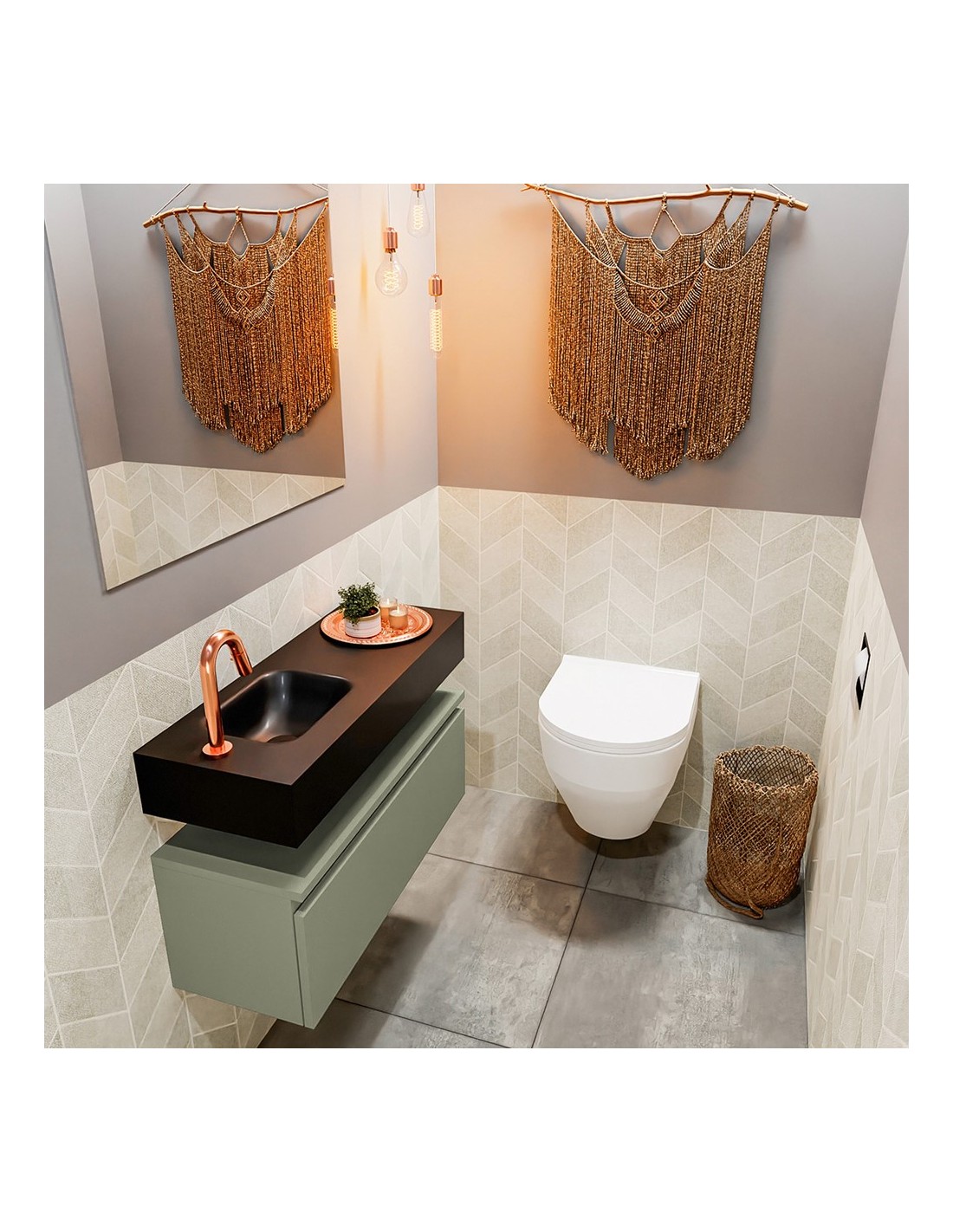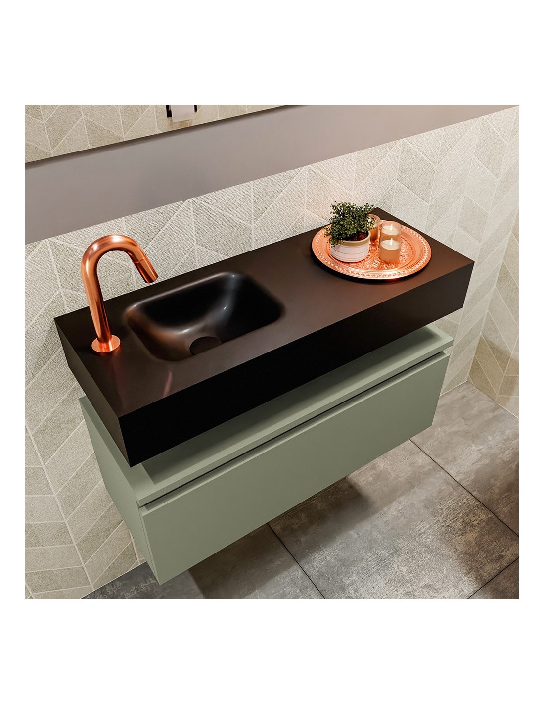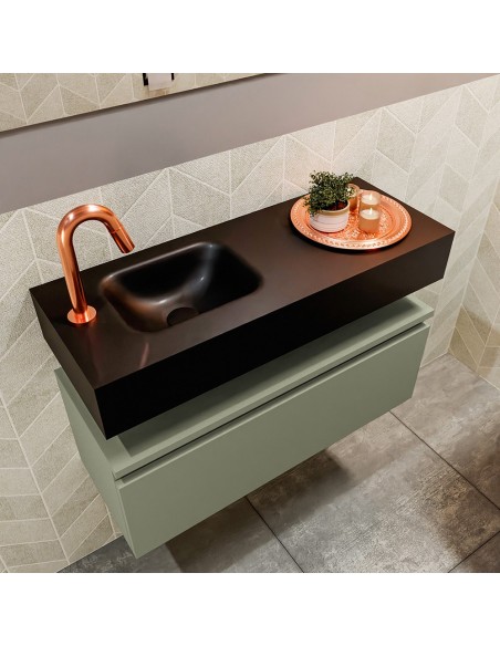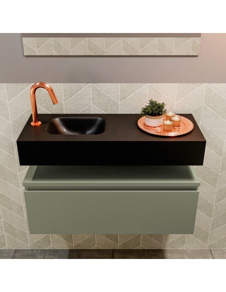ANDOR Komplet badmiljø venstrevendt håndvask B80 cm MDF - Armygrøn/Sort