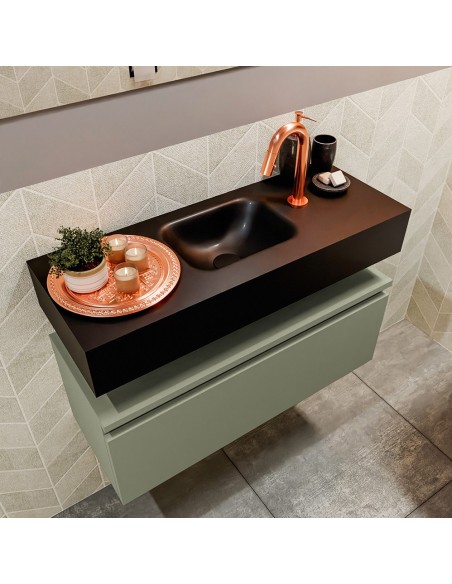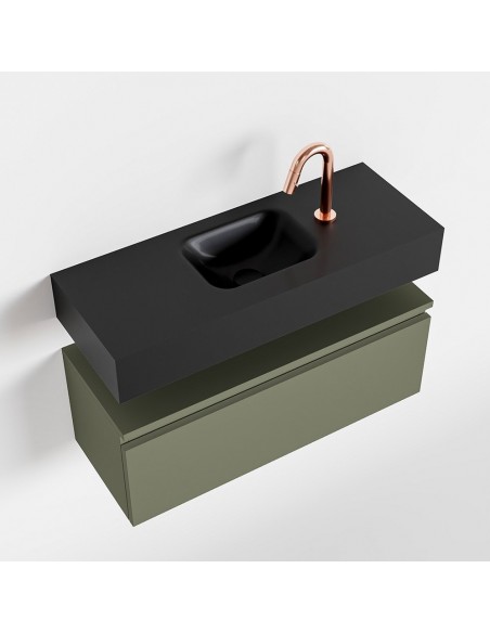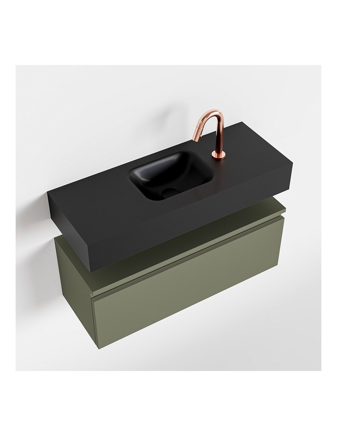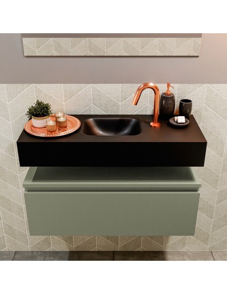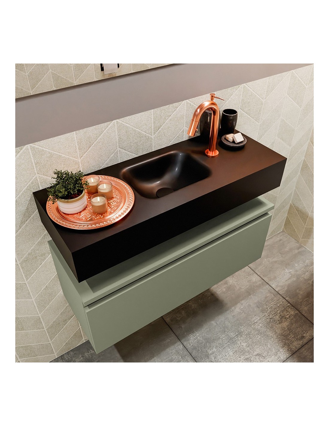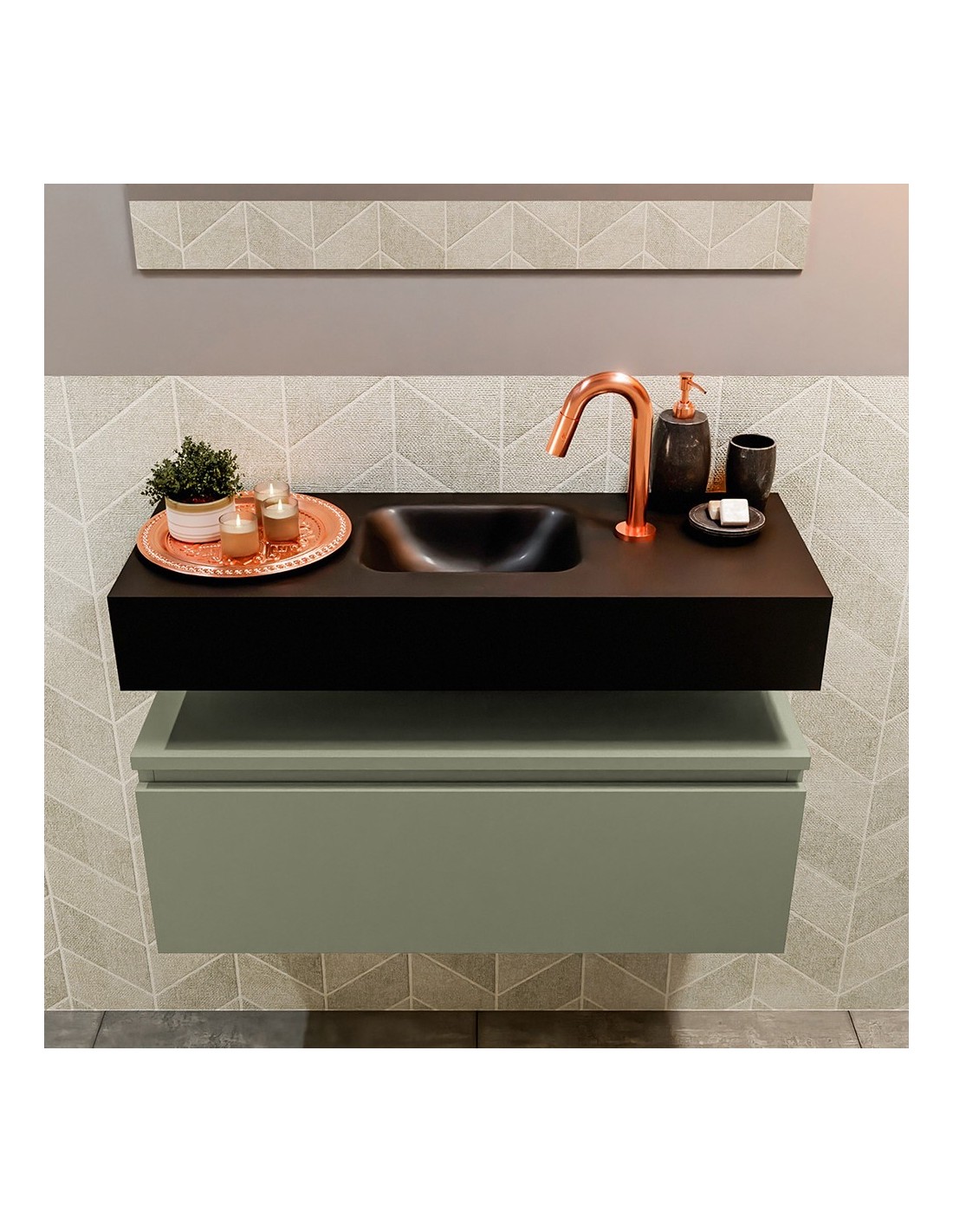ANDOR Komplet badmiljø centreret håndvask B80 cm MDF - Armygrøn/Sort
