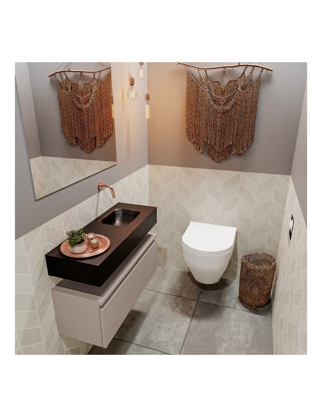 ANDOR Komplet badmiljø højrevendt håndvask B80 cm MDF - Røg/Sort