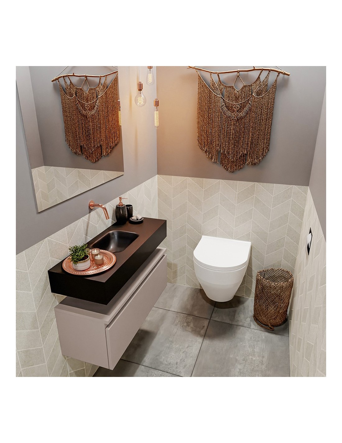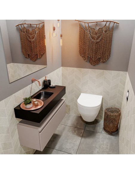 ANDOR Komplet badmiljø centreret håndvask B80 cm MDF - Røg/Sort