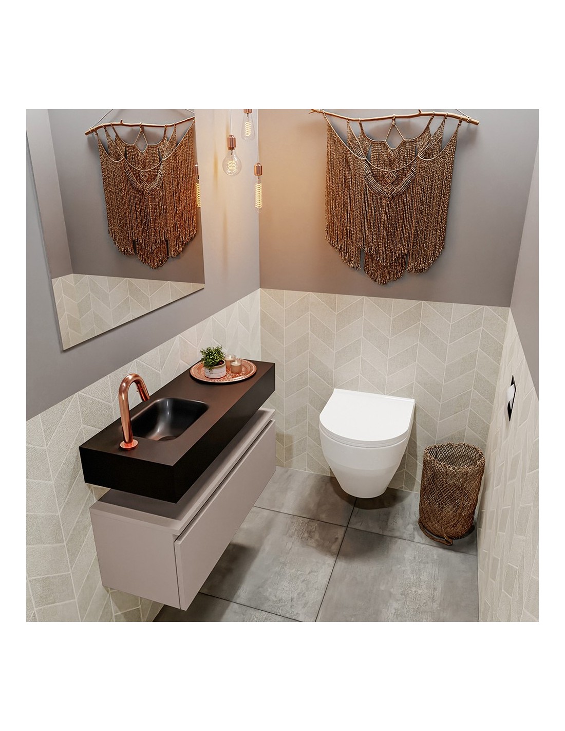 ANDOR Komplet badmiljø venstrevendt håndvask B80 cm MDF - Røg/Sort