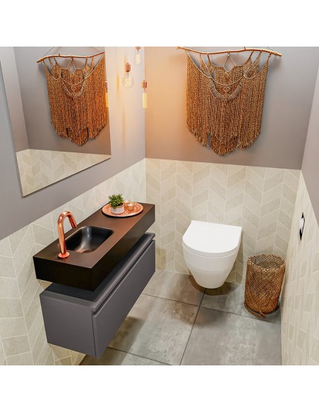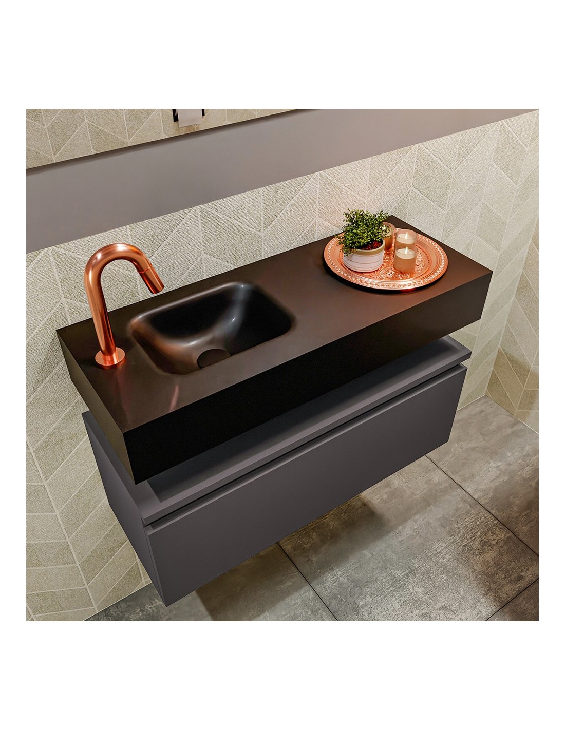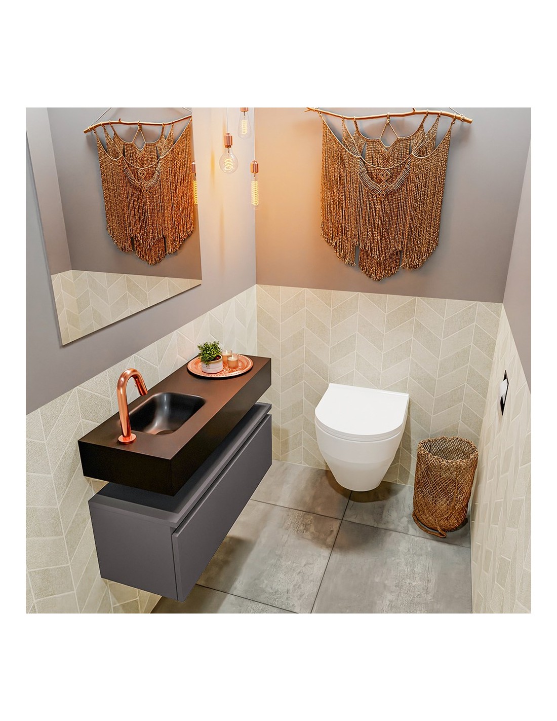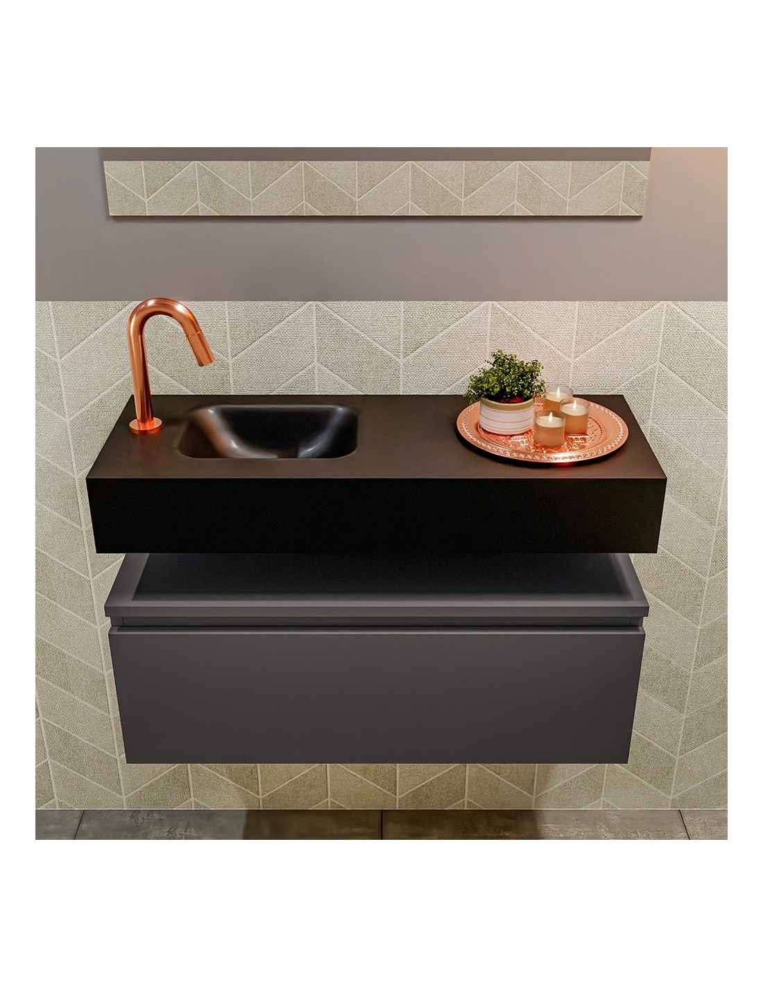 ANDOR Komplet badmiljø venstrevendt håndvask B80 cm MDF - Mørkegrå/Sort
